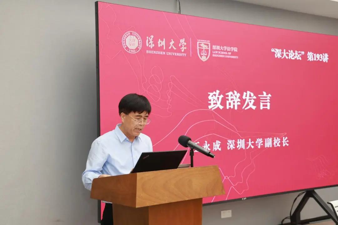 Professor Wang Yongcheng, Vice President of SZU, delivered a welcome speech on behalf of the university. He expressed heartfelt gratitude to Professor Xu Xianming, highly praising his outstanding achievements and contributions in the fields of legal research, legal education, and service to the national rule of law.