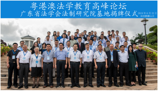 6月22日,由深圳大学法学院、深圳大学社会科学部主办的第十四届“粤港澳法学教育高峰论坛暨广东省法学会法治研究基地揭牌仪式”在深圳麒麟山庄顺利召开。来自中国人民大学、中国政法大学、广东财经大学、广州大学、暨南大学、华南师范大学、澳门大学、香港城市大学、澳门科技大学、深圳大学等20多所高校的30余名校长、院长、知名学者以及深圳司法局、最高法院第一巡回法庭、蓝海现代法律服务发展中心、广东省法学会和深圳中银律师事务所相关领导和20余名代表出席了本次会议。