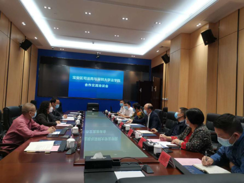 随后,宝安区司法局局长詹文烈、副局长贺章立及基层管理科科长何雪英、调研员陈静萍等人会见了法学院领导及教师代表,双方在公共法律服务中心会议室进行了座谈。