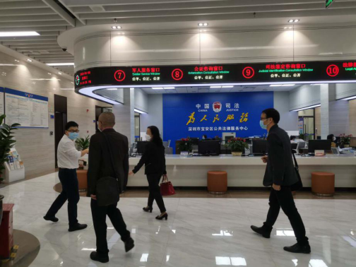 首先,在闫俊强主任的带领下,李卫英书记一行人参观了宝安区公共法律服务中心,李卫英书记对中心的设计及工作理念表达了高度的赞赏。