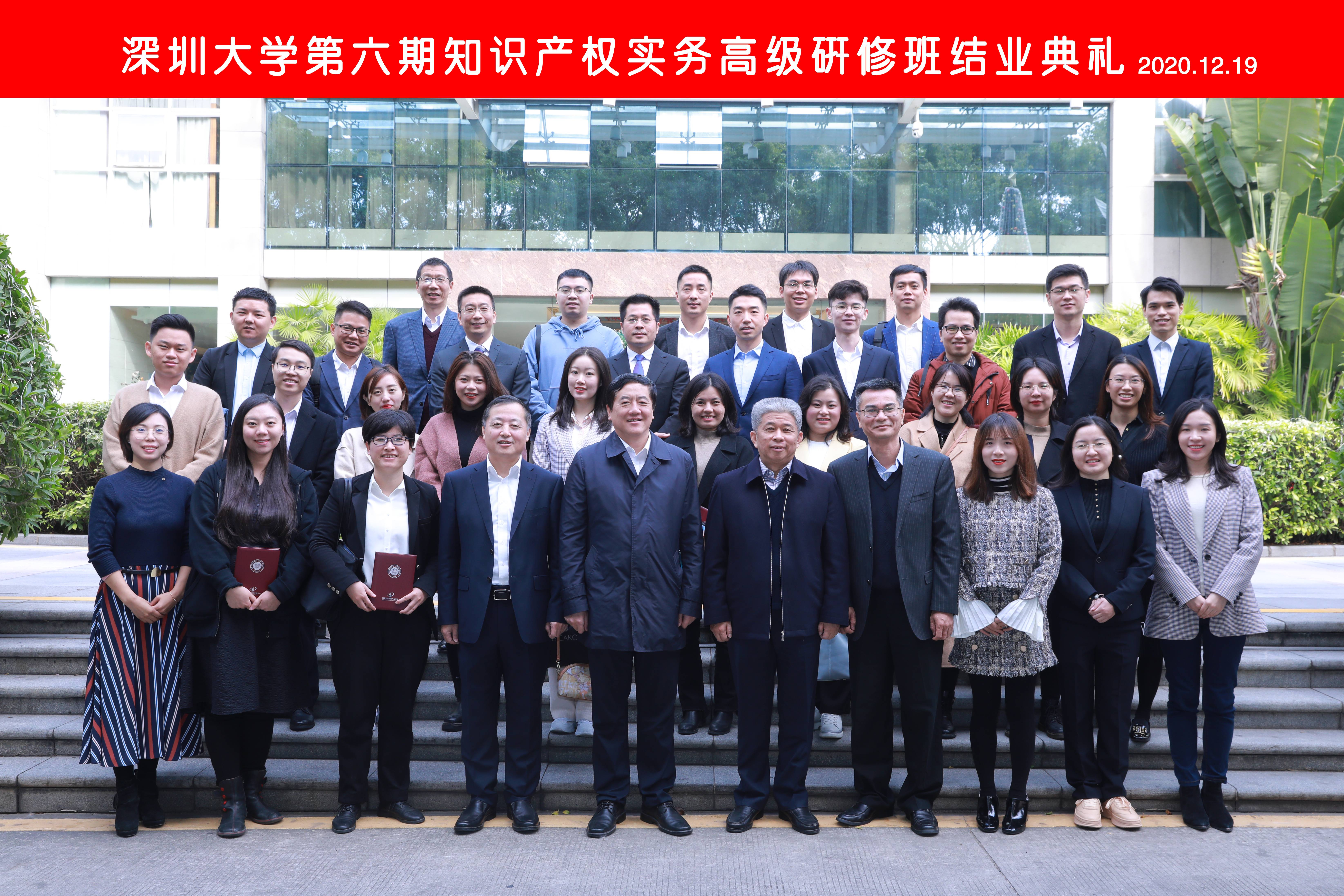 2020年12月19日上午,第六期深圳大学知识产权实务高级研修班结业典礼如期举行。深圳大学校党委副书记范志刚、深圳市市场监督管理局机关党委书记、二级巡视员夏昆山、深圳市市场监督管理局知识产权促进处处长陈民钢、深圳大学知识产权学院院长黄亚英等嘉宾应邀与第六期知识产权实务高级研修班结业学员共同参加了此次典礼。结业典礼由黄亚英院长主持。我校知识产权实务高级研修班自知识产权学院成立以来已开办七期,每期研修班学习时间为两年。