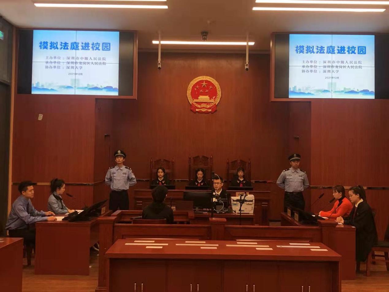 模拟法庭环节由龙岗区人民法院组织,以未成年人非法持有毒品案件为范本,由深圳大学法学院同学担任审判长、检察官、书记员、辩护人、被告人和法警等角色,开展法庭辩论、法庭宣判、法庭帮教等环节,模拟一宗未成年人违法犯罪案件的审判过程。同学们通过亲身观摩模拟法庭,深刻认识到青少年非法持有毒品行为的危害性,感受到法庭的威严,也增强了对法律的尊崇与敬畏。
