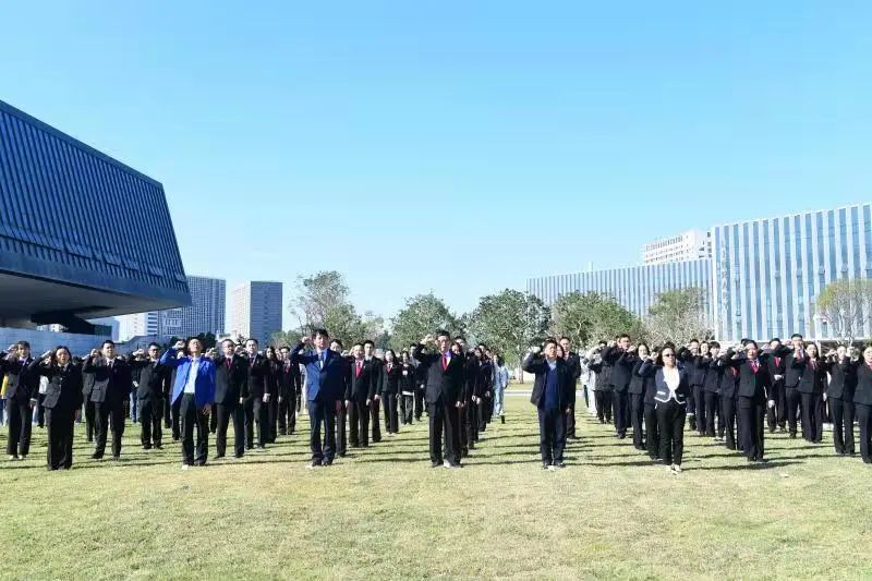 在宪法宣誓环节,黄志坚、李永华、李卫英、刘俊、阮彬以及来自各区法院的法官及嘉宾带领深大法学院本科同学在小礼堂外对国旗进行了庄严的宣誓。市人大代表、政协委员见证了宣誓仪式。
