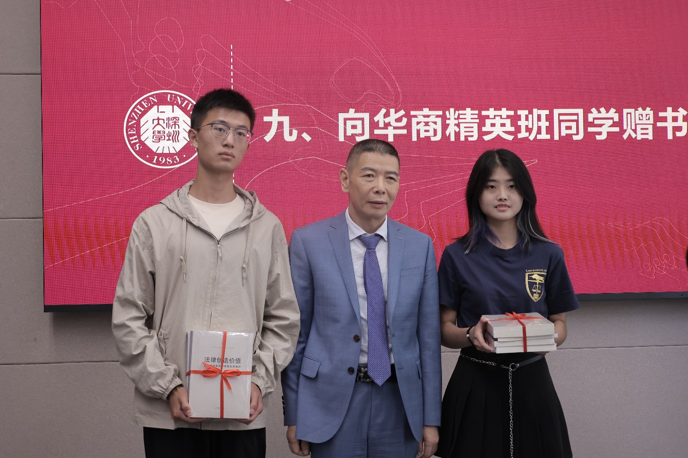 华商律师事务所高树主任、法学院刘俊院长向华商精英班赠送法律专业书籍入学礼。