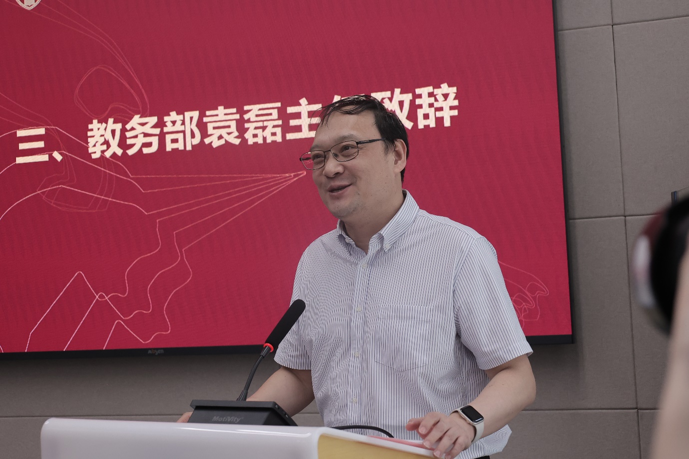 深圳大学教务部主任袁磊致辞。袁磊主任首先向华商精英班正式开班表示祝贺,并对华商律师事务所在华商精英班开设过程中的深度参与和大力支持,对法学院领导班子和教务老师的前期筹备工作表示感谢。近年来校企合作的培养模式已经成为各个高校教学方法改革中较为关注的内容,也是人才培养的全新推力,他相信,在双方的密切合作下,一定能办好华商精英班。袁磊主任期待,作为推进校企协同育人、推进人才培养改革的重要举措,华商精英班成为深圳大学高水平法学院建设中的一抹亮色。