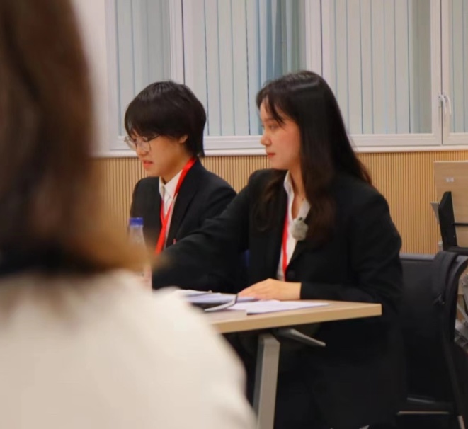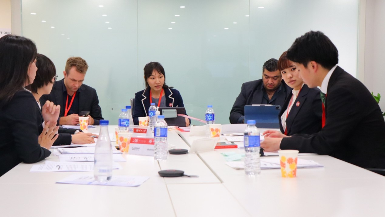 2023年3月20日8:30,第一场比赛对战的是卫冕冠军莫纳什大学。由陈凯澜、邓敏两位队员作为申请方(CLAIMANT)代表深圳大学出战。在比赛中,两名队员沉着冷静、思维敏捷,充分发挥了自己的实力,面对强大的对手仍然不落下风,在激烈的辩论中获得了仲裁员的高度赞扬。