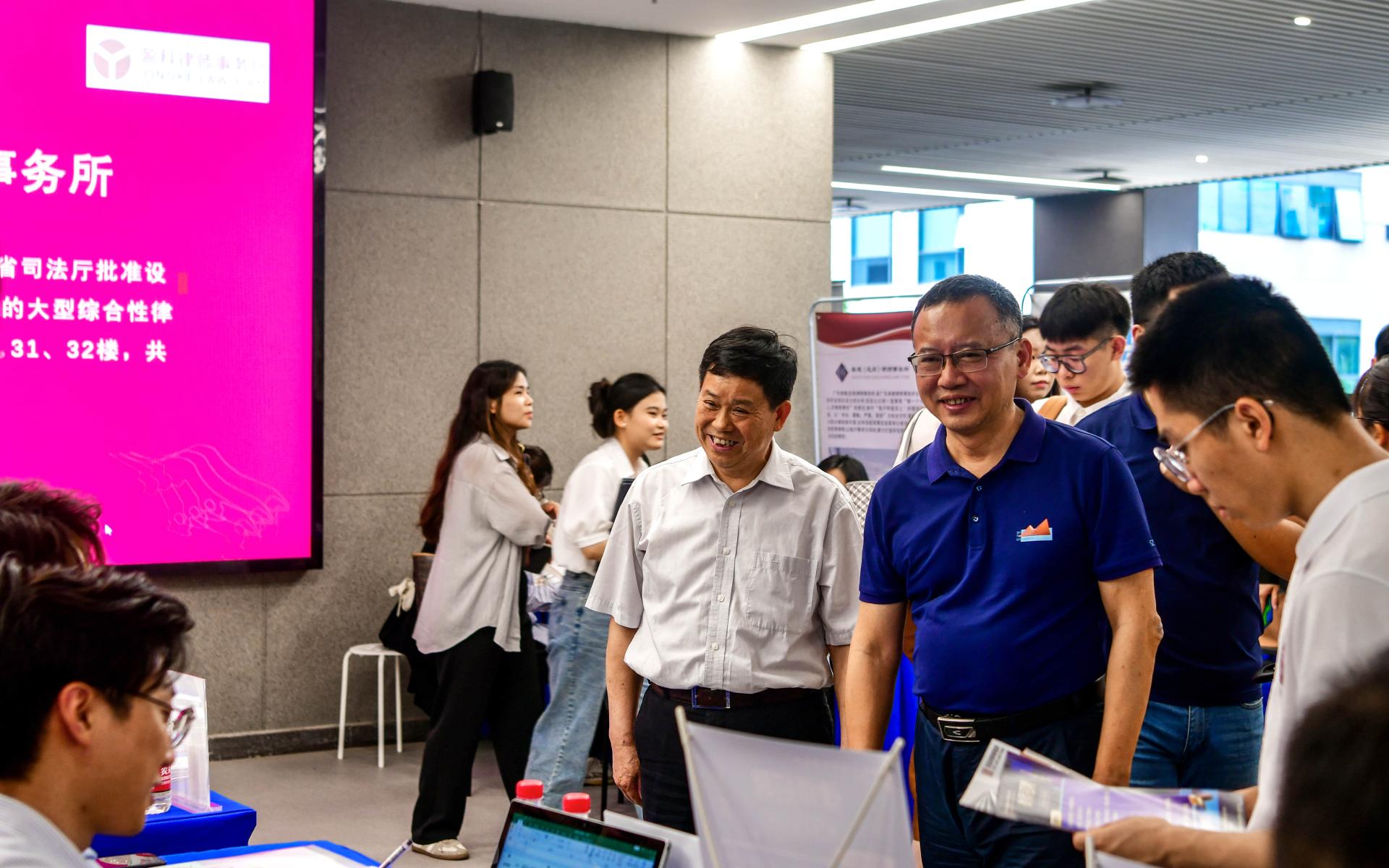 为贯彻落实党中央、国务院“稳就业”“保就业”决策部署,抢抓春招关键期,全力攻坚促就业,4月19日下午,我院联合深圳市律师协会于深圳大学丽湖校区明律楼二楼平台举办了2023届毕业生招聘会。本次招聘会共邀请了52家企业,为同学们提供了300余就业岗位和大量实习岗位,吸引了300多名学生前来参加。