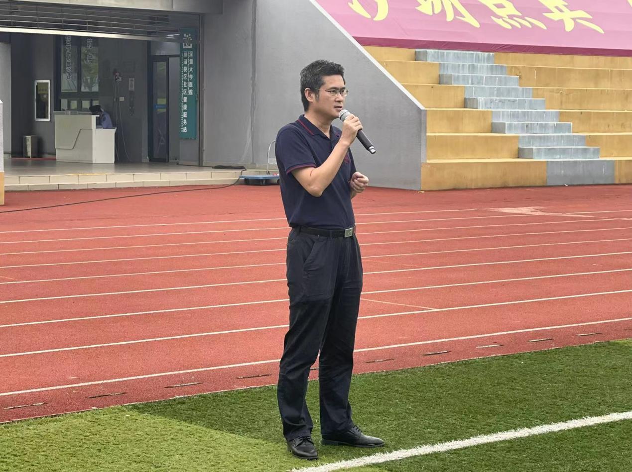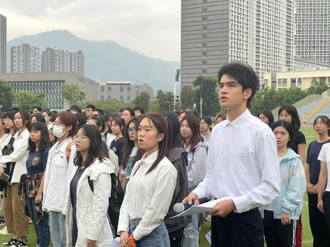 10月24日清晨,秋高气爽,荔园飘香。法学院在丽湖校区至快田径场举行以“世界联合互惠互利,携手书写人类未来”为主题的升旗仪式,深圳大学副校长李永华、法学院党委副书记林济霖、学院团委老师李炽杰及师生代表共约230人参加本次升旗仪式。