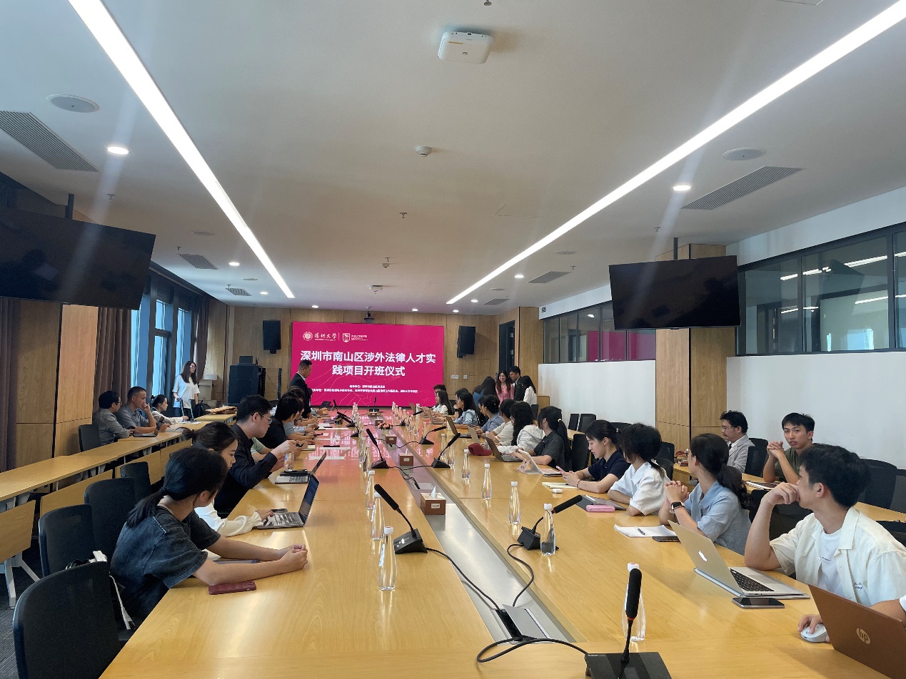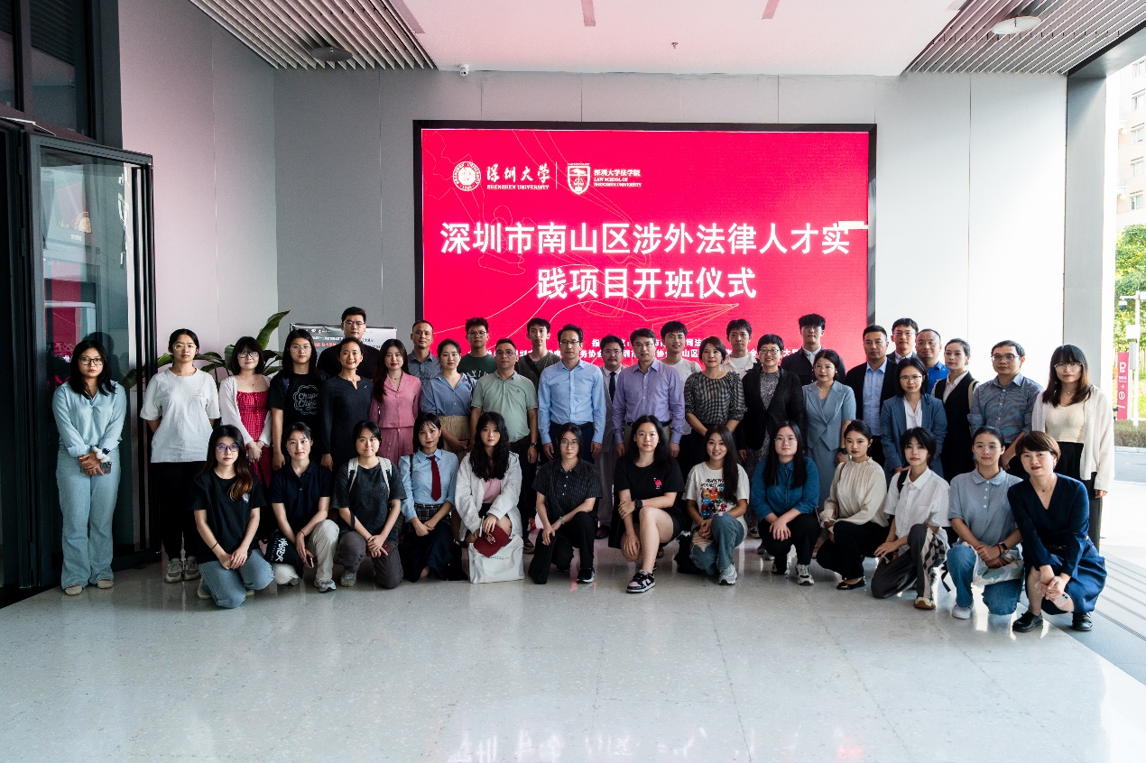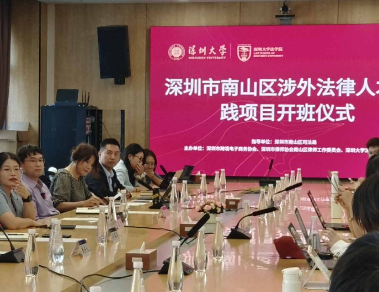 2023年10月26日下午14时30分,南山区涉外法律人才培训项目开班仪式(法学院跨境电商涉外法治实践项目)在丽湖校区明律楼418会议室顺利举行。深圳市南山区司法局局长冯文库,律公科科长刘伟华, 深圳市跨境电子商务协会会长王馨、法律部秘书长张超,深圳市律师协会南山区律师工作委员会主任黄庆礼,知名律师Alan Chan,深圳大学法学院院长熊伟、副院长陈梦等以及全体学员参加仪式。