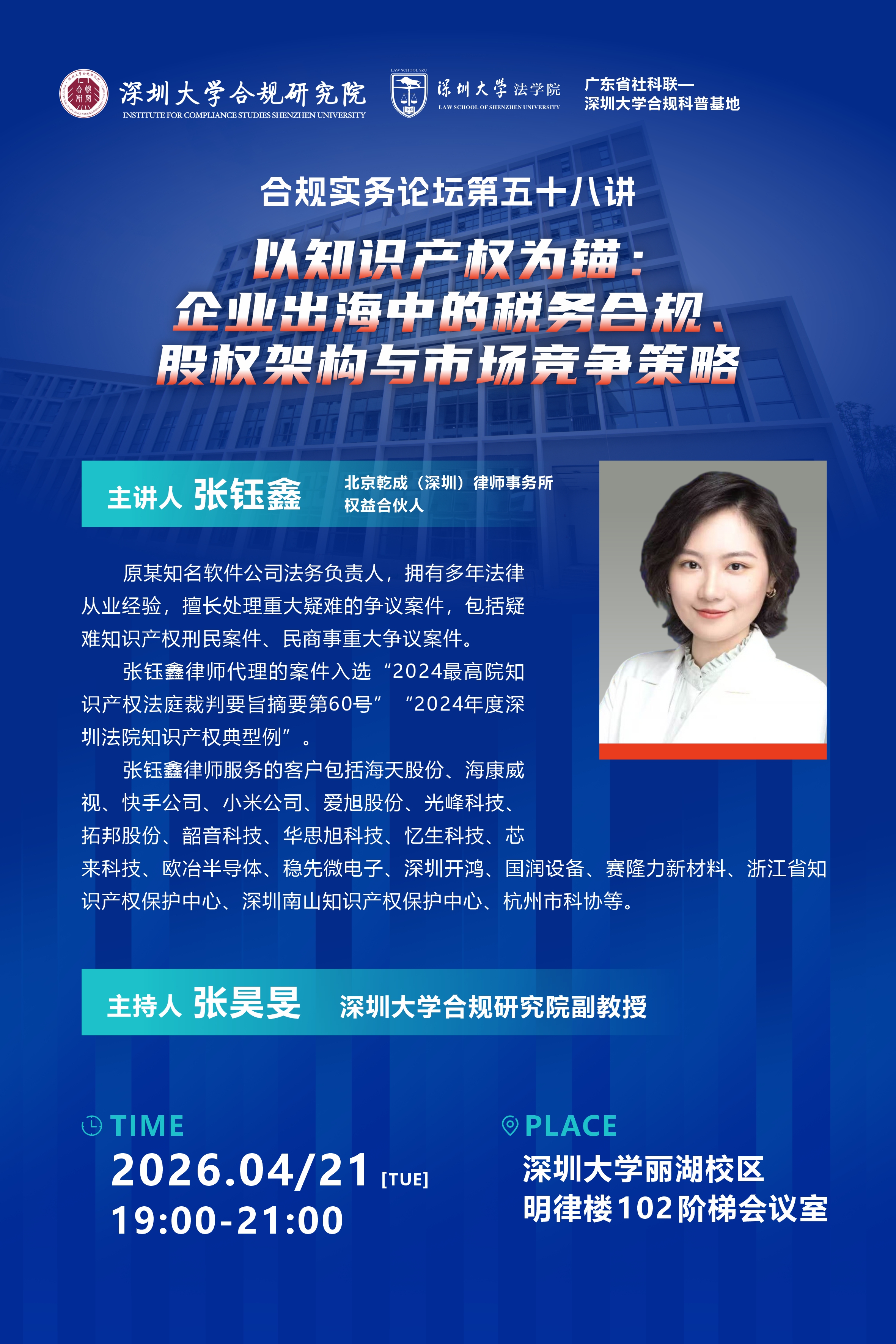地点:深圳大学丽湖校区明律楼102阶梯会议室