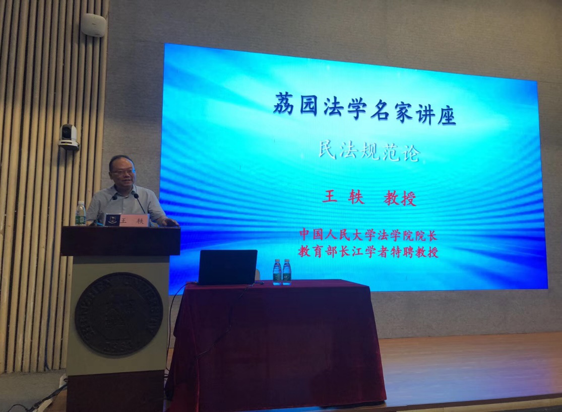 2019年6月22日下午15:00-17:00,在深圳大学科技楼第三报告厅,中国人民大学法学院党委书记、院长,教育部**学者特聘教授王轶作为主讲嘉宾,为深圳大学师生带来一场极其精彩,主题为《民法规范论》的学术讲座,这也是“荔园法学名家讲坛”系列讲座的第六讲。本次讲座,由法学院丁南教授主持,参加人员有法学院民商法学科主任钟明霞教授、民商法导师组长蔡元庆教授以及法学院魏启证、马晶、张轶、程子薇老师等法学院众多师生。报告厅内座无虚席,两侧的阶梯也坐满了朝气蓬勃的学子。