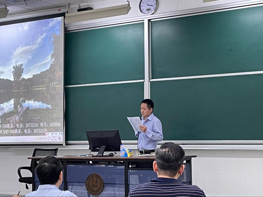 接着,法学院副院长叶海波同志发言。他宣布了法学院2个专业年度评估结果,本学院社会学与法学专业在实践创新、师资队伍等方面排名靠前,但仍然存在巨大改造空间,需要增强法学院的学科优势,发挥好现有资源,实现资源优势与学科优势共促,相互发展。