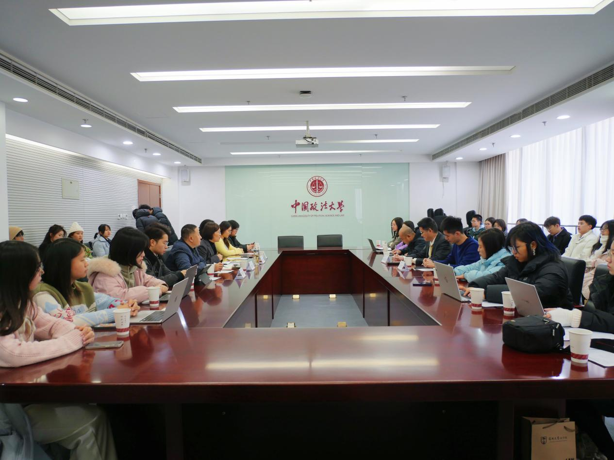 11月28日,实践教学团到访中国政法大学法学院参加交流座谈会。会议由中国政法大学法学院团委书记孟祥滨主持,党委副书记王文英、教学科研办公室主任杜智雯、学生团委副书记邓熙可出席,法大法学院若干名学生干部参会。