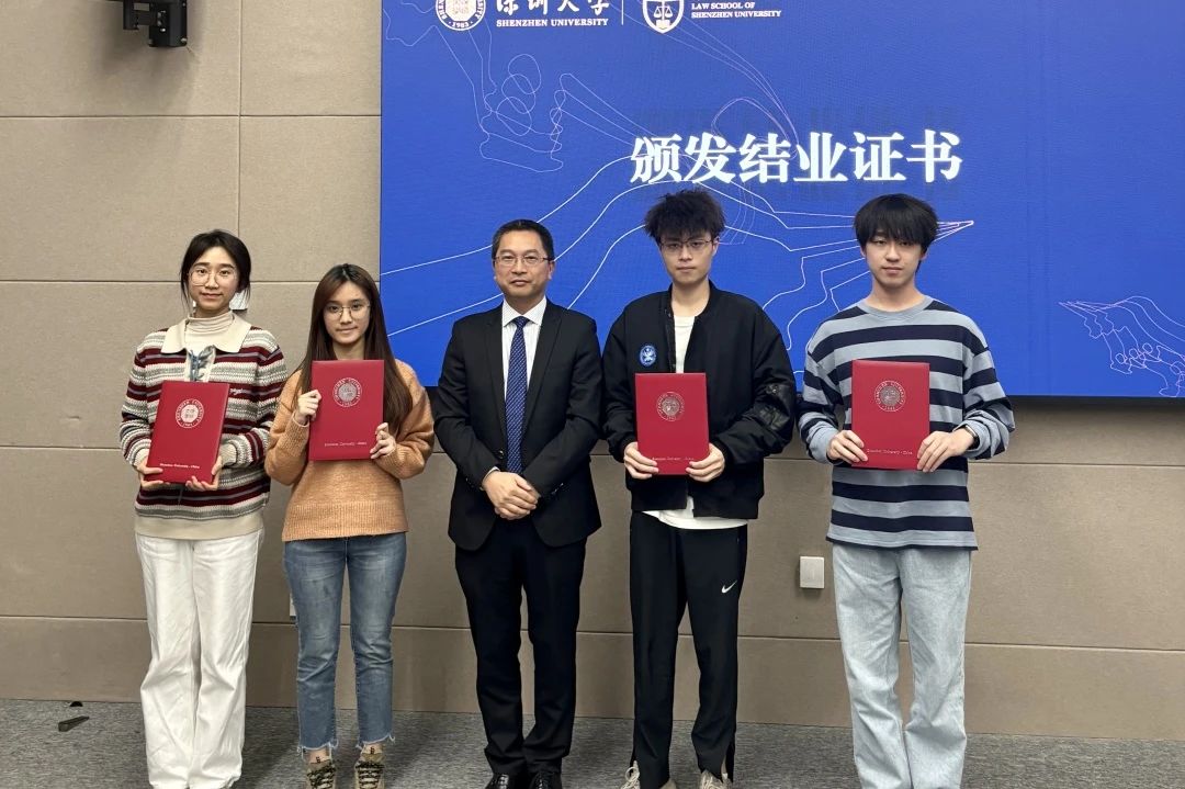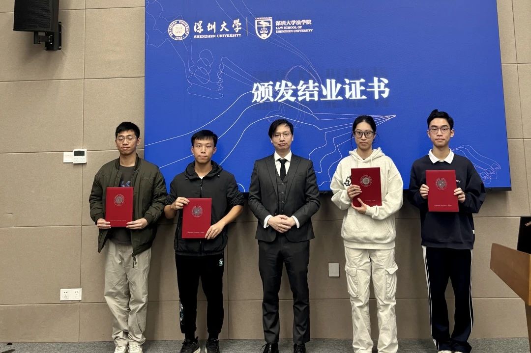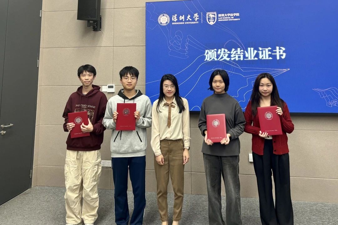 2024年1月7日,深圳大学法学院和北京市君泽君(深圳)律师事务所、北京观韬中茂(深圳)律师事务所、广东知恒律师事务所、广东良马律师事务所、广东圳启律师事务所就涉外法治卓越人才孵化营项目举行闭营仪式。深圳大学法学院院长熊伟、党委书记马文泽、五大律所主任及其他孵化营顾问团、指导团成员参加了本次签约暨授牌仪式。闭营仪式由深圳大学法学院副院长宋旭光主持。