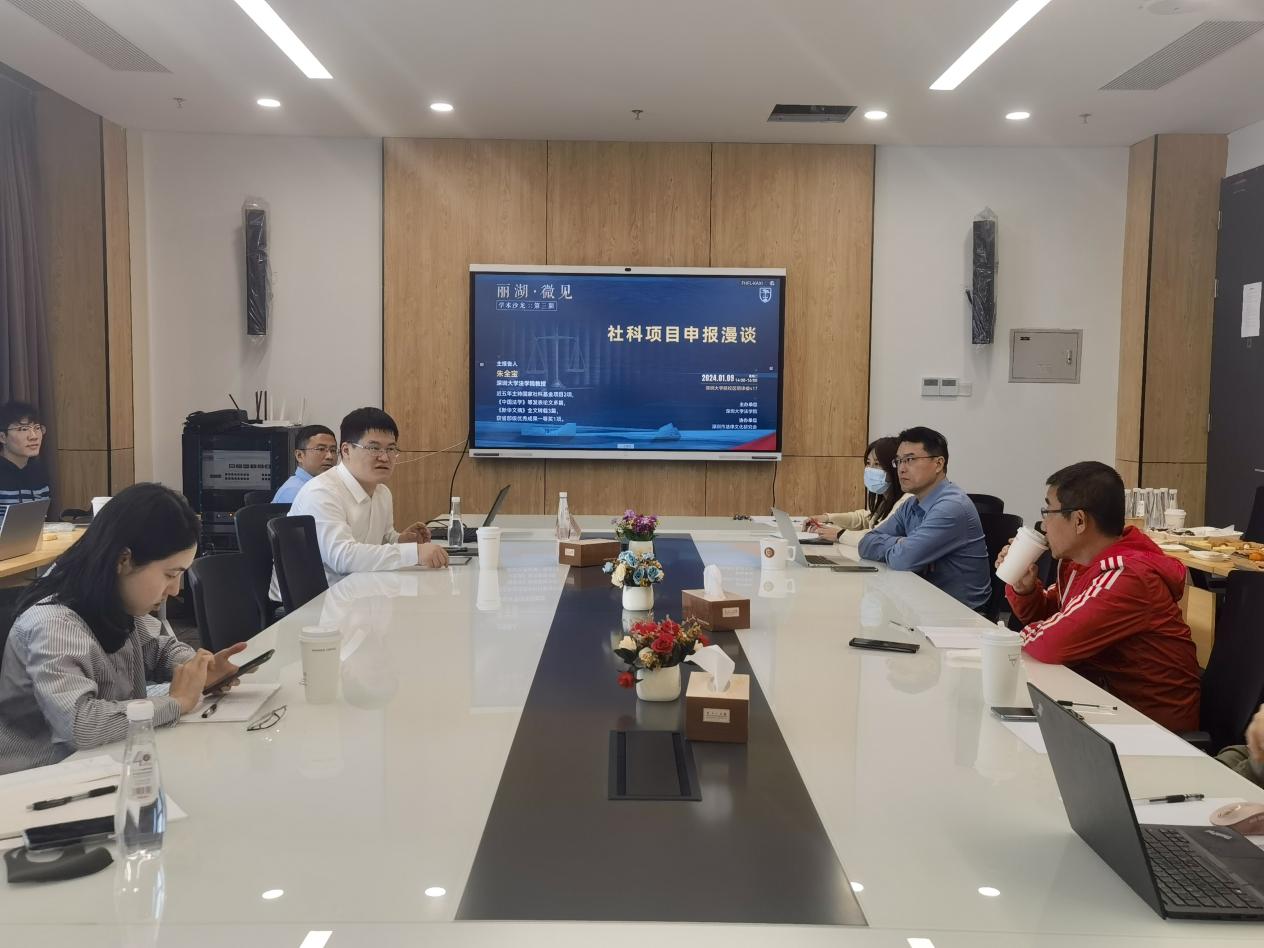 2024年1月9日下午,由深圳大学法学院主办,深圳市法律文化研究会协办的“丽湖·微见”学术沙龙第三期“社科项目申报漫谈”在深圳大学丽湖校区明律楼417顺利举办。