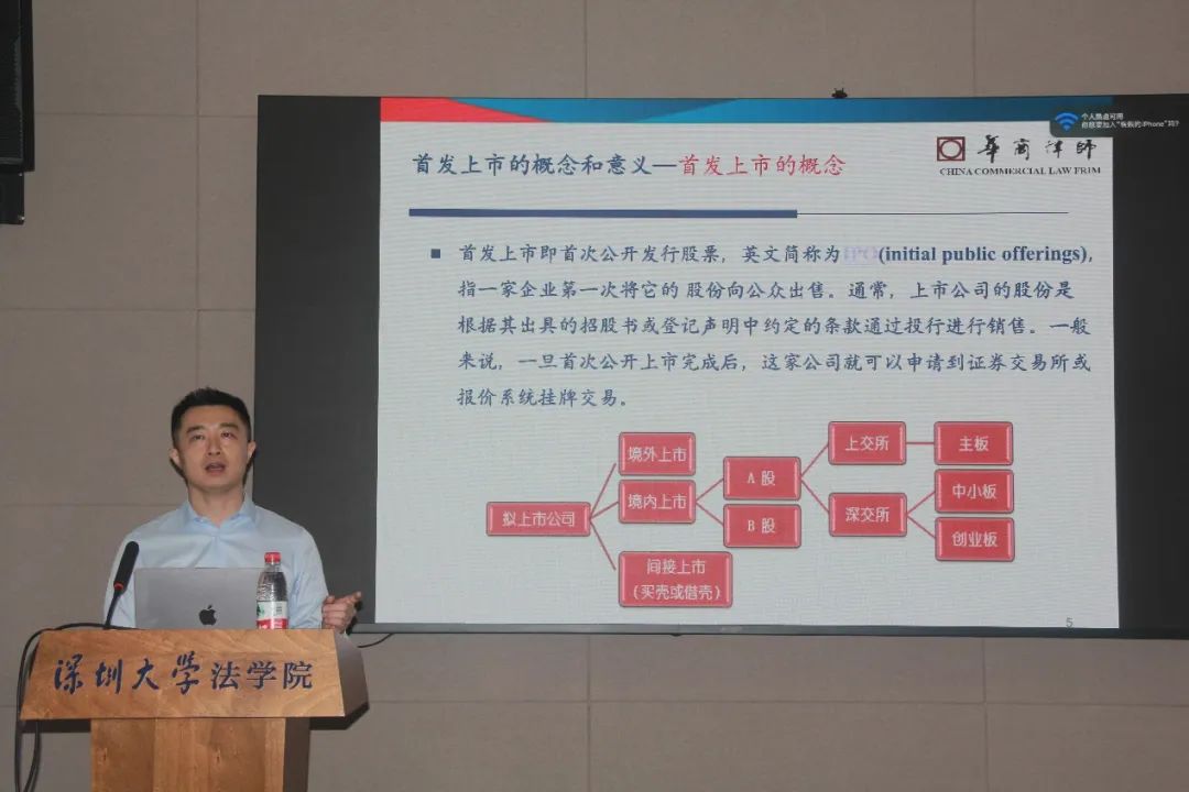 郭峻珲是华商律师事务所的执行合伙人和高级合伙人,主要从事股份制改造、境内外上市、并购重组等证券法律业务,他这次授课的主题是“资本市场及证券法律法规解读”。