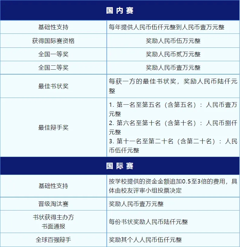 深圳大学法学院校友为激励在校学生积极参与,在深圳大学法学院设立“深圳大学法学院Jessup国际法模拟法庭大赛校友奖学金”,奖励规则如下: