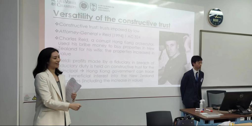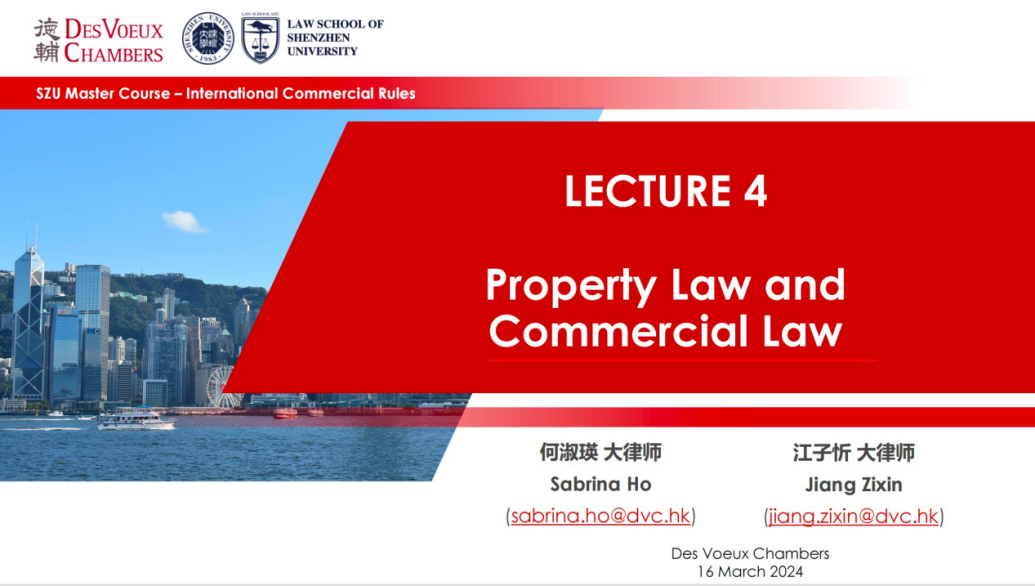 “德辅法学课程”是香港德辅大律师事务所为深圳大学与深圳国际仲裁院联合培养的国际仲裁法律硕士项目捐赠的系列公益课程,包括“国际商事规则”必修课和其他专题课程。3月16日,“国际商事规则”课程迎来第四讲。香港德辅大律师事务所何淑瑛大律师(Sabrina Ho)和江子忻大律师(Jiang Zixin)就“财产法与商法精要”开展专题授课。