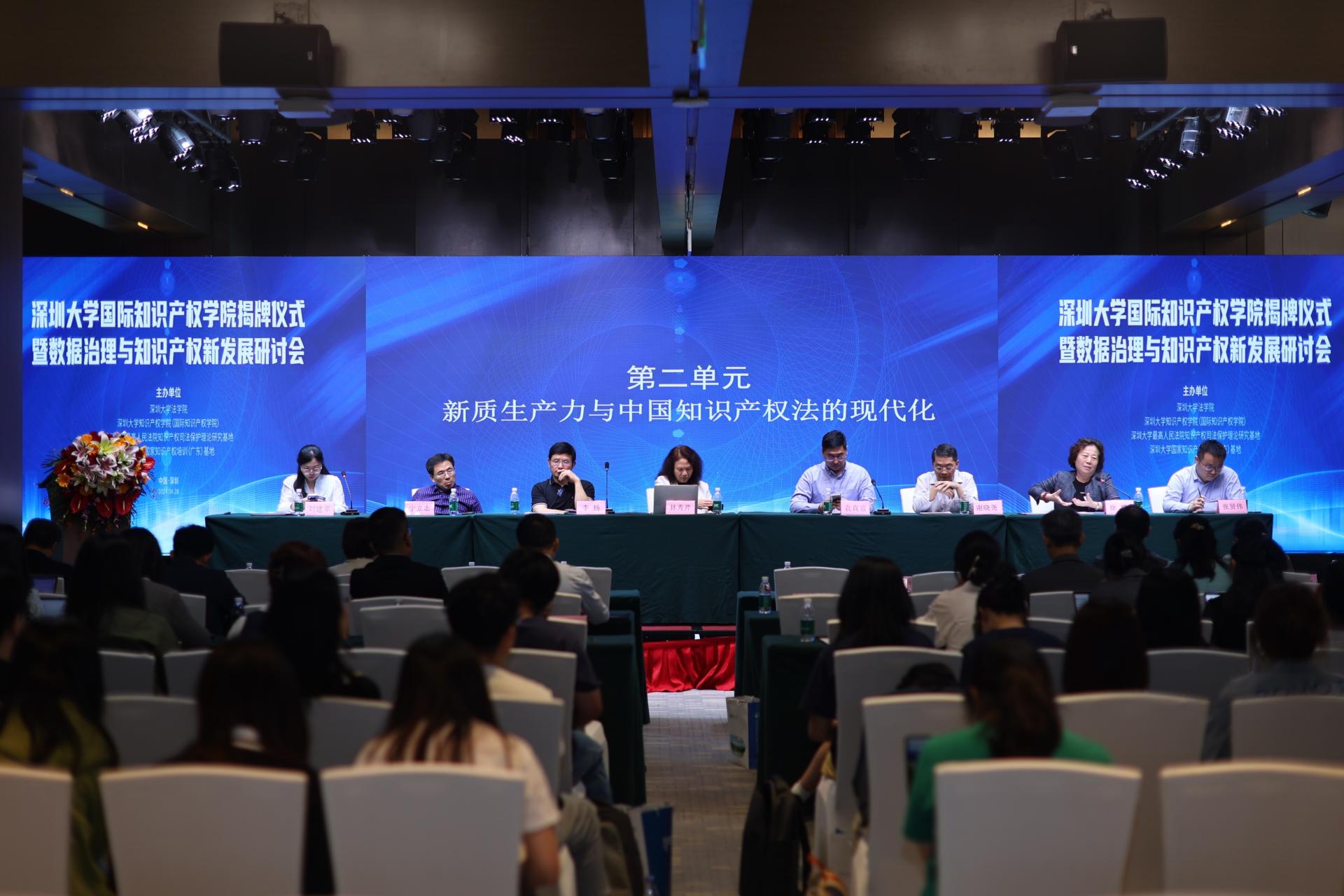 研讨会第二单元”新质生产力与中国知识产权法的现代化”由深圳大学知识产权学院(国际知识产权学院)副院长刘建翠主持。武汉大学知识产权与竞争法研究所所长宁立志教授以《反不正当竞争法》为切入点,分析了《反不正当竞争法》中有关市场混淆条款的历史修订和最新动态,建议立法对商业标识的隐性使用总体上应持宽松态度。中国政法大学民商经济法学院李扬教授发表了自己对知识产权在面对新质生产力挑战时的深刻见解,强调了《反不正当竞争法》和《反垄断法》在促进创新效率中的作用,并同时建议政策的制定需综合考量各方利益。厦门大学知识产权研究院院长林秀芹教授深入探讨了新质生产力与人工智能的关系,以及人工智能对知识产权正当性理论的挑战,并提出需要更具解释力和引导性的知识产权法理论来指导AI技术的健康发展。上海大学法学院副院长、知识产权学院院长袁真富副教授指出在AIGC(AI Generated Content)时代背景下,AI生成内容对知识产权保护提出了新的挑战,他认为关于AI内容的保护,要基于其发展趋势来考虑,否则很多讨论就会脱离产业发展的实践,而且会带来更多的法律上的困扰。中山大学法学院谢晓尧教授认为在大数据、AI时代,利益主体越来越多样化,利益关系越来越复杂化,颠覆性创新成为人类生活的一种常态的情况下,需要对创新保持必要的宽容开放。与谈环节,暨南大学法学院、知识产权学院徐瑄教授认为一个创新型国家需要新质生产力跟新质生产关系的有效结合,而新质生产力本质上是知识产权的另一种表述。深圳大学法学院张贤伟助理教授提出人类对AI应保持适度的距离,避免过度热情,以免忽视了人类情感和社会互动的复杂性。