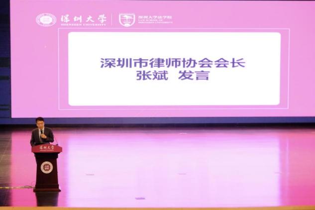 深圳市律师协会会长张斌发表讲话。他以多年来从事法律实务工作的感悟为基础,对同学们作了未来深耕法学专业的叮嘱。指出法律职业是一个需要信赖与合作的职业,我们必须秉持一颗忠诚之心,全心全意,真心诚意雕刻我们的职业生涯,忠诚是法律人职业的灵魂,要忠于法律、忠于事业、忠于当事人;法律人也当有利他的精神,学会平衡利益、调解矛盾;作为一名法律人还要有创新能力,需要各位在洞察社会百态后仍能探寻出公平与正义的新境界,在繁杂的利益纷争中定分止争,但又出淤泥而不染。