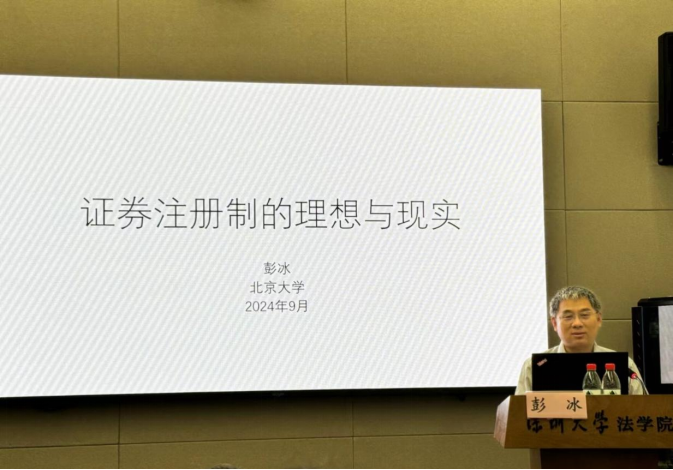2024年9月20日下午,“丽湖法治大讲坛”总第九十七期暨“名家论坛”第五十四期专题讲座在深圳大学丽湖校区明律楼103报告厅成功举办。本次讲座由北京大学法学院教授彭冰主讲,主题为“证券发行注册制的理想与现实”。法学院近百名师生到场聆听。