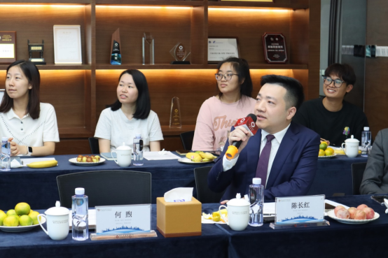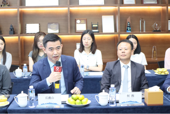 二、领导发言 参观结束后,双方进行了亲切交谈。何煦律师代表锦天城(深圳)向林副书记及各位老师、同学致以诚挚的欢迎,随后介绍了出席人员,并希望各位同学在本次交流中能有所收获。 丘彪山律师对锦天城(深圳)的机构设置、人员构成、规模范围、业务类型等进行了介绍,并结合实例介绍了数年来深大法学院校友在锦天城律所的执业发展情况。丘律师表示,深大优秀毕业生是锦天城深圳分所合伙人团队的中流砥柱,感谢深大法学院为锦天城输送人才,欢迎更多深大法学院学子到锦天城发展。