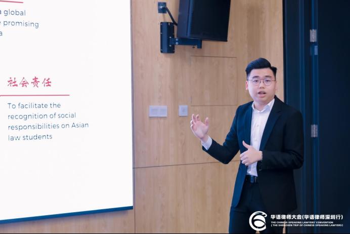 在学生代表的分享环节中,来自马来西亚、泰国、新加坡、中国澳门的亚洲法律学生会代表分别介绍了各自国家的法学教育体系、职业发展路径和就业规划。亚洲法律学生会国际总会主席李凯杰在发言中表示,总会作为一个覆盖全球的法律学生组织,积极推动成员国间的合作,并正在重启中国地区的分会工作。郑嘉宁、左沐奇、陈诗淇作为亚洲法律学生会在泰国、中国澳门、新加坡的学生代表,也分享了各自国家和地区的法学教育情况、背景和经验。