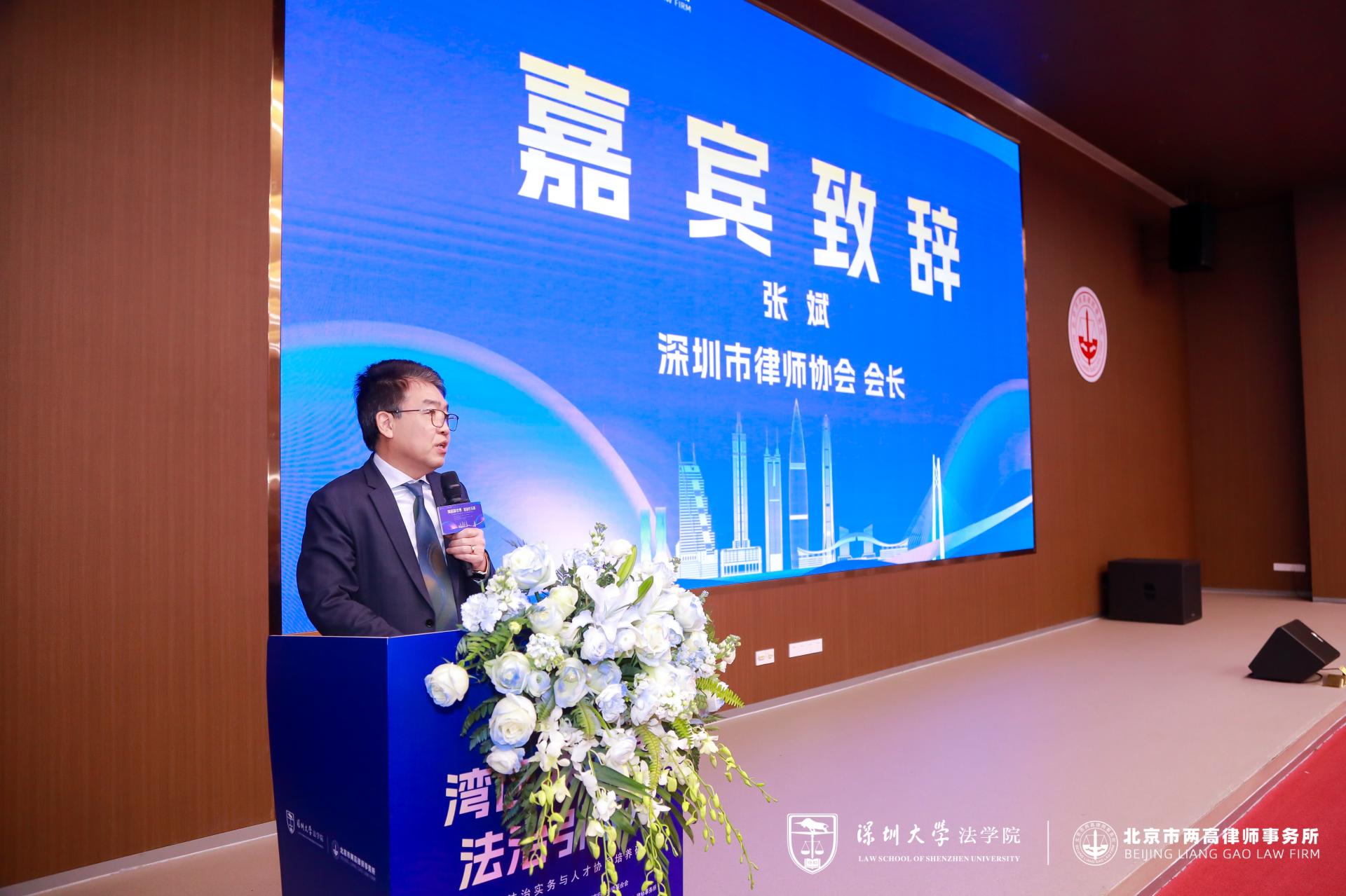 深圳市律师协会会长张斌致辞指出,涉外法律人才的培养:一是要坚持需求导向,不能闭门造车;二是要坚持实践导向,加强实践教学;三是充分发挥粤港澳律师作用。
