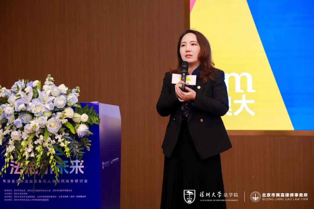 深圳市司法局涉外法治工作处处长郑秀丽作“因需利导,顺‘市’而为—深圳市涉外法治人才的现状与未来”主题发言;