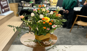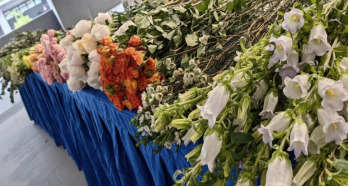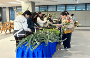 活动现场还有花香四溢、色彩斑斓的鲜花摆满桌面。在翡翠鉴赏之后,活动进入了插花环节。学院工会为每位老师准备了丰富的花卉材料,大家兴致勃勃地挑选花材,精心构思自己的插花作品。老师们专注投入,巧妙地将各种花材搭配在一起,创作出了一件件独具匠心的插花作品。活动现场花香四溢,充满了艺术气息。