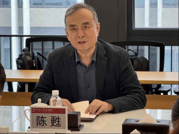 2025年4月1日上午,中国社会科学院学部委员、法学研究所研究员、《法学研究》主编陈甦教授莅临深圳大学法学院调研交流,中国社会科学院法学研究所网络与信息法研究室副主任(主持工作)周辉随行。座谈会由深圳大学法学院院长熊伟主持,副院长周卫、宋旭光,教师代表朱谢群、张淑钿、韩平、高俊杰、李明超、吕成龙、敖希颖、黄炜杰、黄忠军、郭丹阳、林偶之等参加。