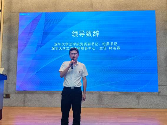 深圳大学法学院党委副书记林济霖同志在致辞中表示,深圳大学志愿法律服务中心的主旨是构建起覆盖师生权益保障、社区普法援助、特殊群体维权及知识产权保护的全方位服务体系。林书记强调,面对新技术带来的法律挑战,深大学子应主动增强知识产权保护意识,将法治思维融入创新创业全过程,争做新时代法治建设的践行者。
