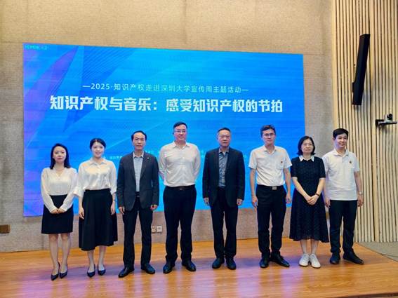 2025年4月22日,由深圳市市场监督管理局南山监管局指导,深圳市版权协会、深圳大学法学院、深圳大学艺术学部、深圳大学传播学院及深圳大学志愿法律服务中心联合主办的“知识产权与音乐:感受知识产权的节拍”知识产权宣传周主题活动在深圳大学粤海校区圆满举行。