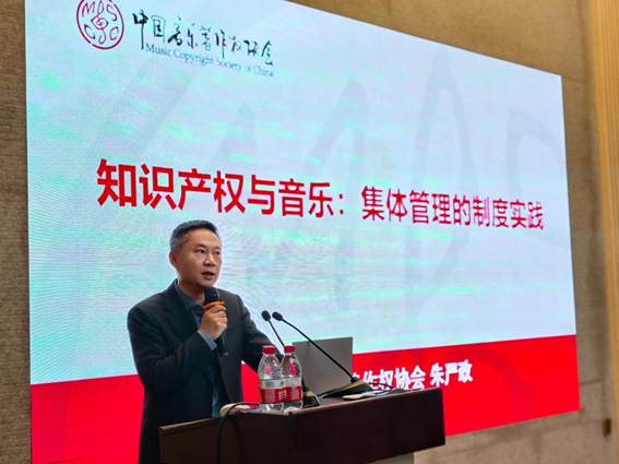 在专家分享环节,中国音乐著作权协会副总干事朱严政同志以《知识产权与音乐:集体管理的制度实践》为主题,结合20年从业经验及典型案例,系统解析知识产权对于音乐的作用和价值,音乐版权集体管理的产生与发展及其在中国的实践成效。