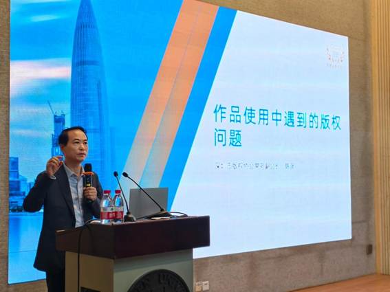 市版权协会常务副会长陈彦同志则围绕《作品使用中的版权问题》,通过知识产权知识普及、法律风险解析与案例互动,为师生提供版权保护的实用指南。