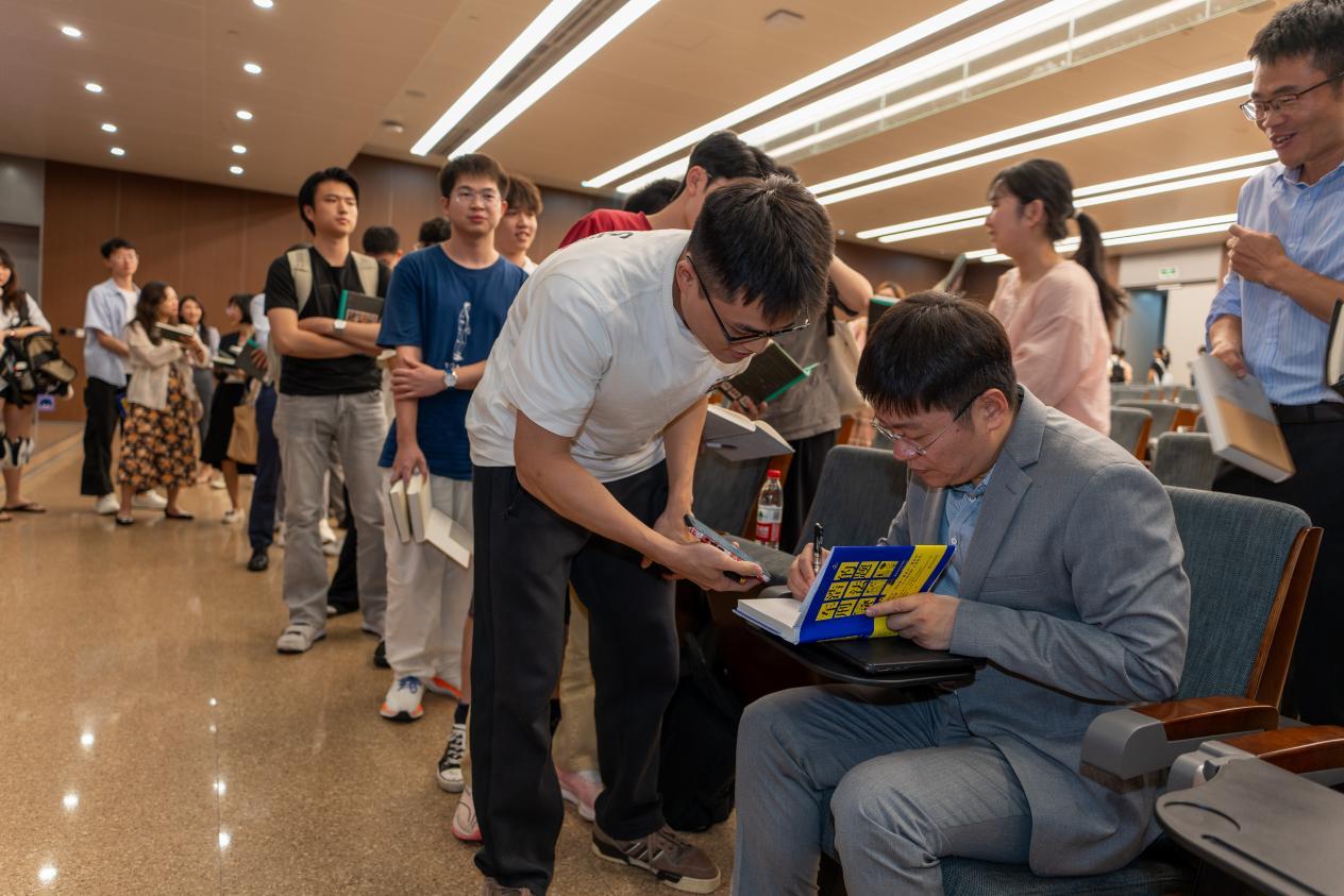 讲座结束后,现场迎来了签名环节,车教授接过每一位同学递来的书本,认真耐心地签下名字,在签名的同时,他还不时与同学们亲切交流,或解答同学们在讲座中遗留的疑惑,或倾听同学们对于法律学习的感悟和困惑,给予他们专业的建议和鼓励。本次讲座在轻松、融洽地氛围中圆满地落下帷幕。