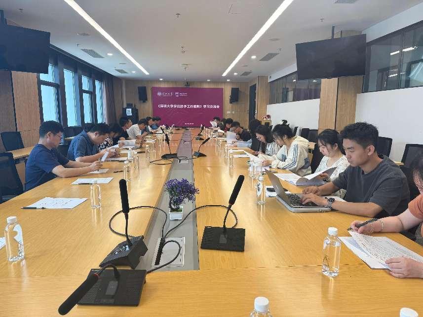 2025年4月22日上午,法学院在明律楼418会议室组织召开《深圳大学学位授予细则》(以下简称《细则》)专题学习交流会。法学院院长熊伟、党委书记马文泽、分管研究生教学工作的副院长周卫组织研究生导师、教学秘书及学生代表共30余人进行学习。本次会议由周卫副院长主持。