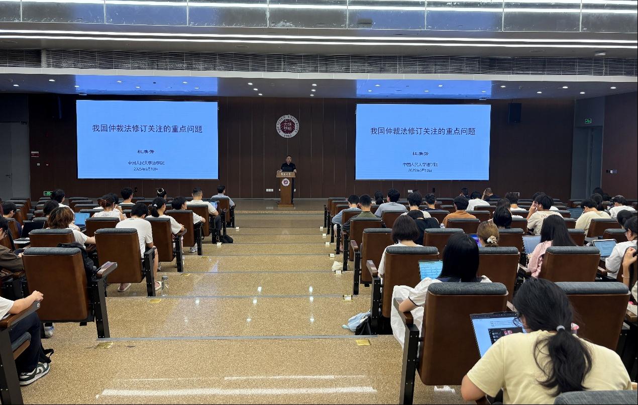 2025年6月10日晚,法学院创新领航讲座在深圳大学丽湖校区启明楼D101报告厅成功举行。本次讲座特邀中国人民大学吴玉章讲席教授,涉外法治研究院院长杜焕芳教授主讲,主题为“我国仲裁法修订关注的重点问题”。本次讲座由深圳大学法学院承办,法学院院长熊伟教授、副院长陈梦副教授等近200名师生及校外律师到场聆听,气氛热烈。