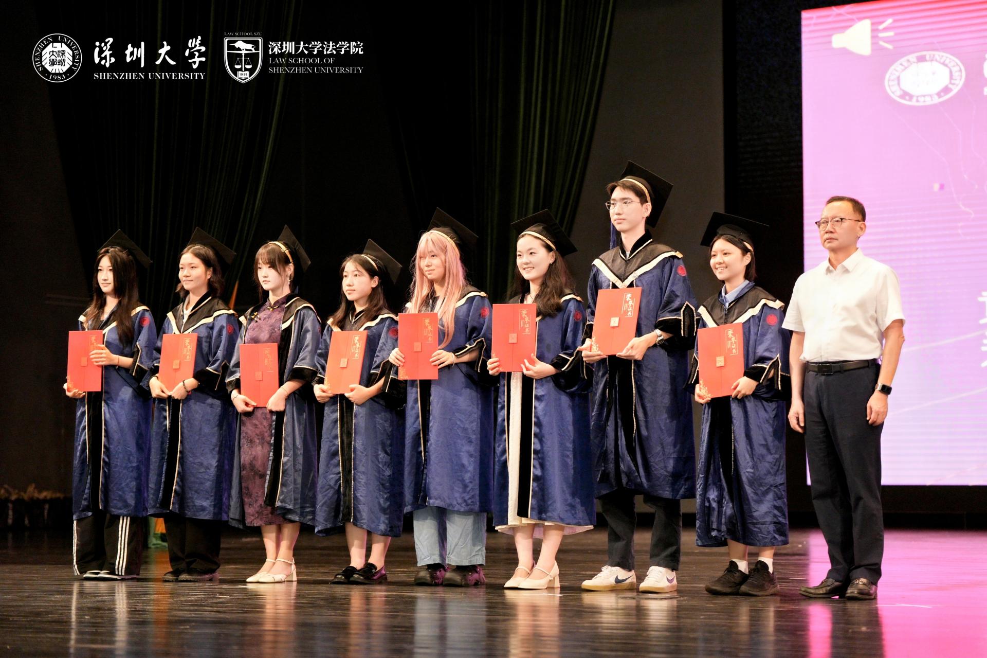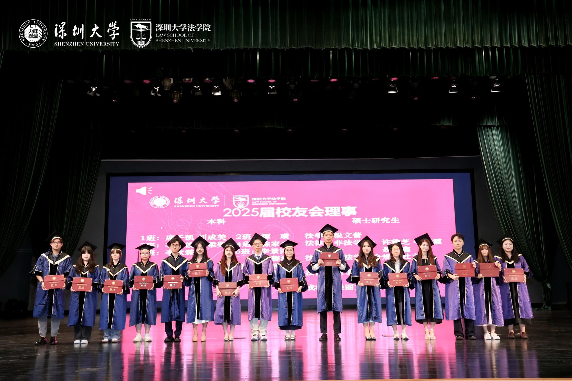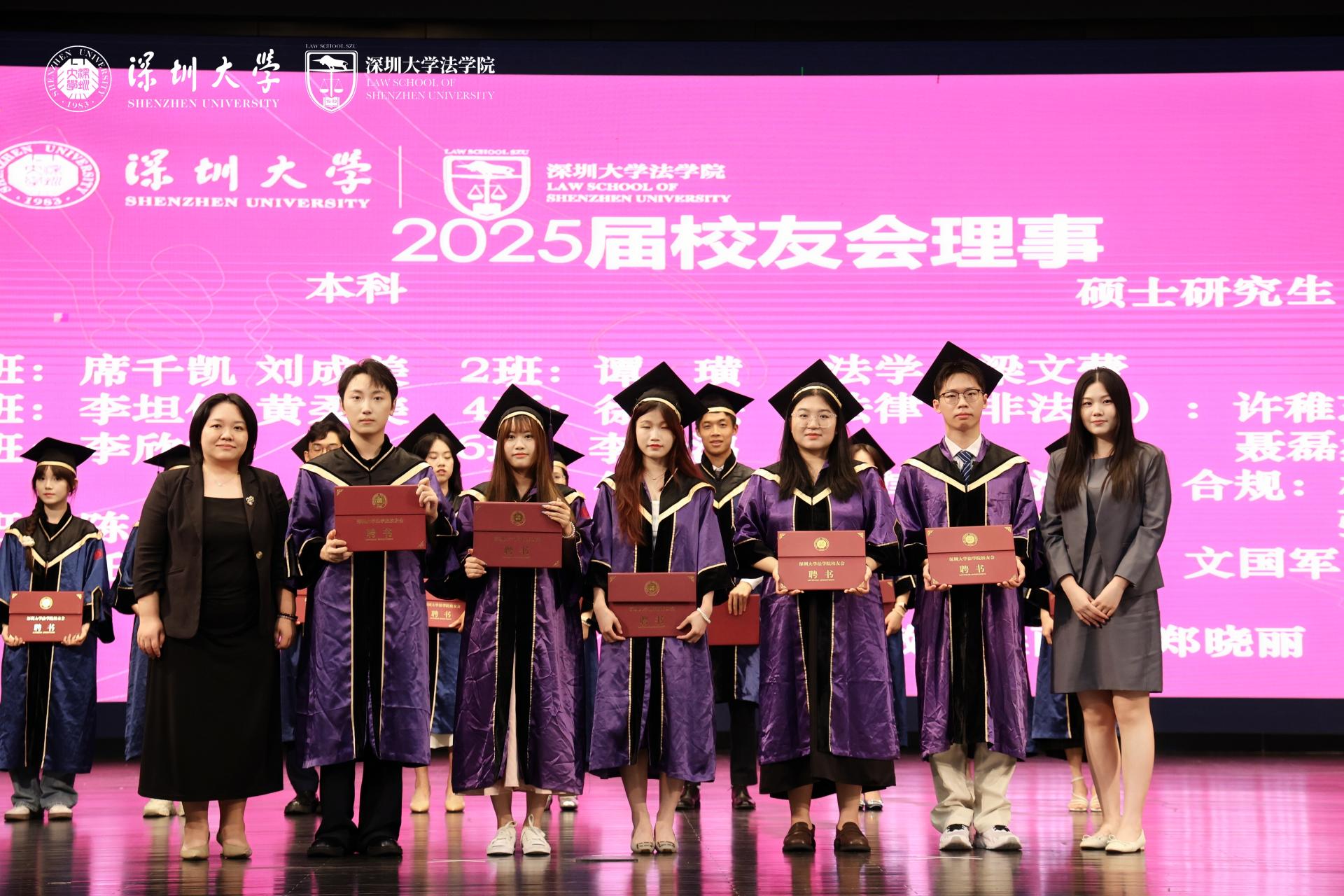 光影荔园夏意浓,文汇礼堂乐声扬。2025年6月26日下午,深圳大学法学院在文汇礼堂隆重举行2025届本、硕毕业生典礼暨学位授予仪式。六月的深圳,阳光洒满校园,绿意盎然,绽放着无限生机与希望。毕业生们身着学位服,头戴学位帽,面带笑容,怀揣理想,齐聚文汇礼堂,在师长与亲友的见证下,共同迎接人生中的重要荣光时刻。坪山区检察院党组书记、检察长刘山泉,法学院校友会轮值会长黄丹娜,校友会常务副秘书长林佳霓,校友会常务理事蓝娅倩、陈佳丽等嘉宾应邀前来,与深圳大学法学院全体班子成员、教师代表共同出席了本次毕业典礼。