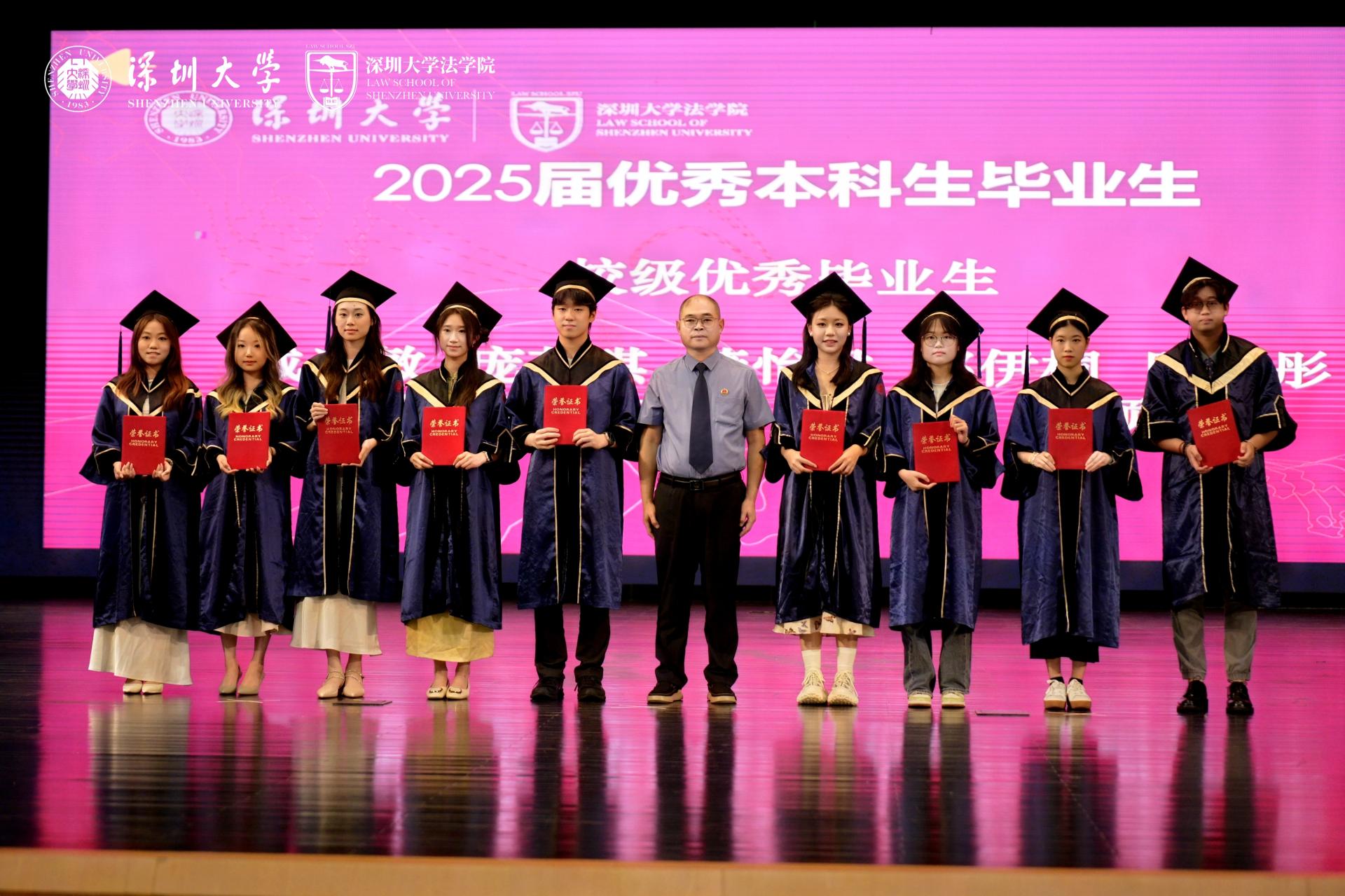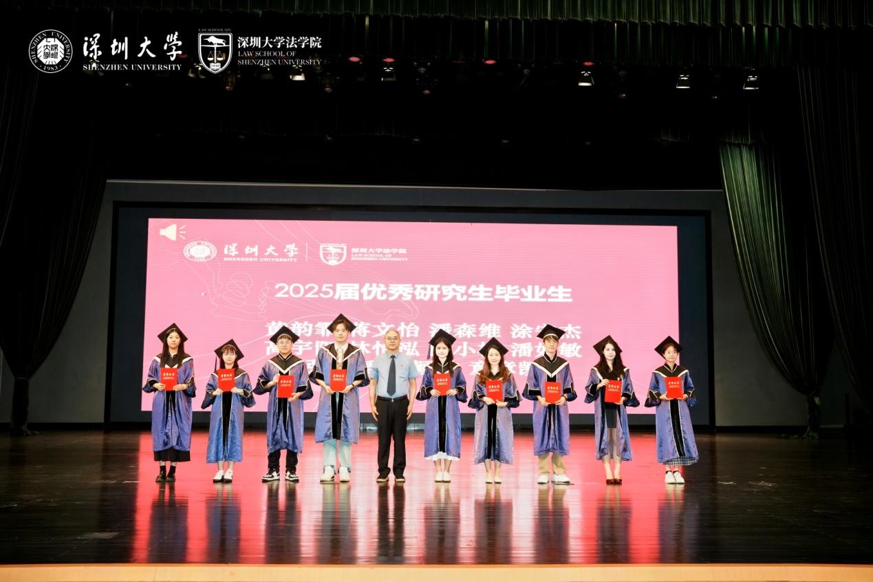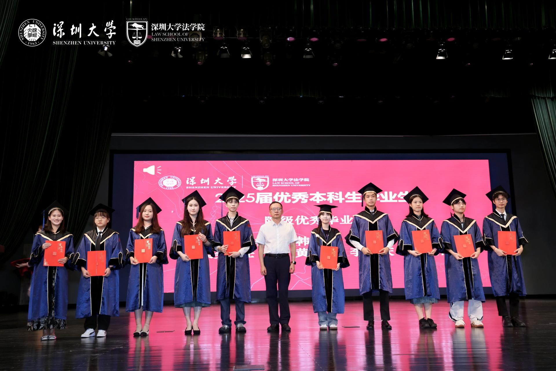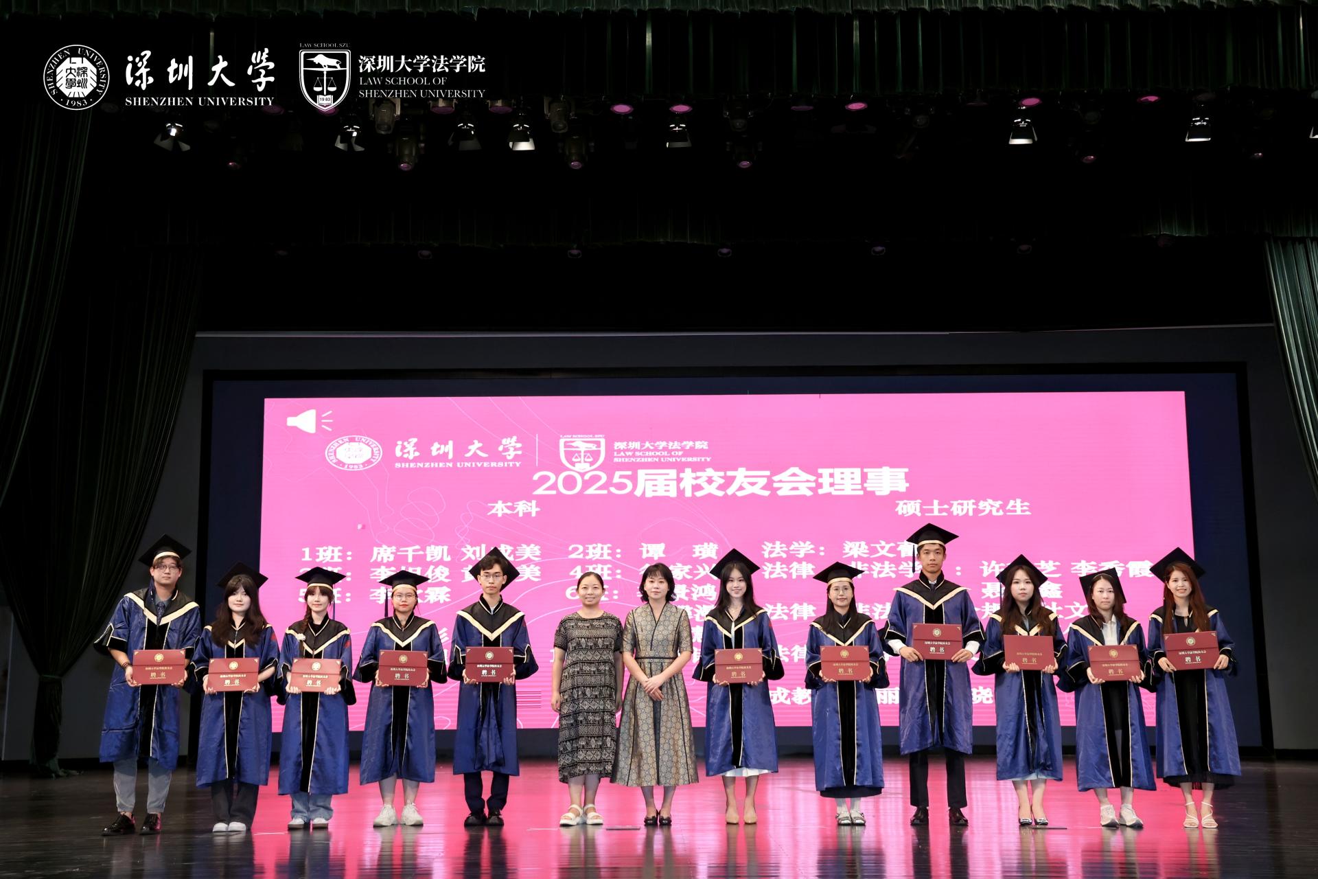 光影荔园夏意浓,文汇礼堂乐声扬。2025年6月26日下午,深圳大学法学院在文汇礼堂隆重举行2025届本、硕毕业生典礼暨学位授予仪式。六月的深圳,阳光洒满校园,绿意盎然,绽放着无限生机与希望。毕业生们身着学位服,头戴学位帽,面带笑容,怀揣理想,齐聚文汇礼堂,在师长与亲友的见证下,共同迎接人生中的重要荣光时刻。坪山区检察院党组书记、检察长刘山泉,法学院校友会轮值会长黄丹娜,校友会常务副秘书长林佳霓,校友会常务理事蓝娅倩、陈佳丽等嘉宾应邀前来,与深圳大学法学院全体班子成员、教师代表共同出席了本次毕业典礼。