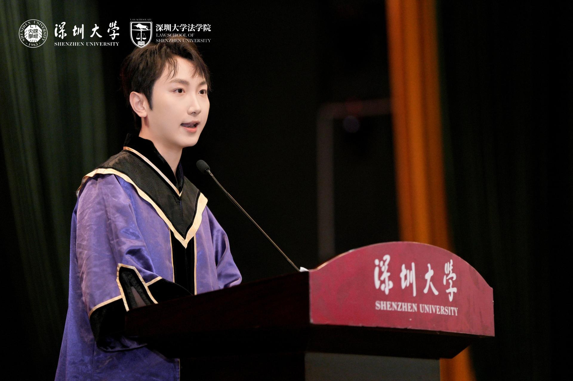 教师代表邹平学在题为《剑出丽湖,仗剑天涯》的毕业致辞中,以“法治剑道”为喻,向2025届毕业生提出三重嘱托:不忘初心;牢记使命;用十年磨一剑的心态坚持“长期主义”。他寄语毕业生以深大为舟,以时间为海,以梦为马,剑出丽湖,仗剑天涯,待2035年荔枝红透时,愿诸君——鞘中剑未老,归来仍少年。