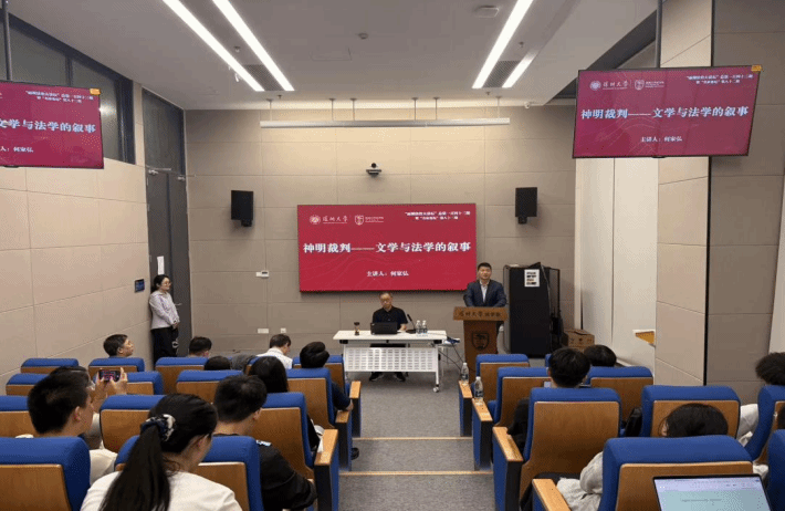 2025年9月20日,由深圳大学法学院主办的“丽湖法治大讲坛”总第一百四十三期暨“名家论坛”第八十二期学术讲座于深圳大学丽湖校区明律楼103顺利举行。中国人民大学法学院证据学研究所所长、反腐败与法治研究中心主任、中南财经政法大学“文澜学者”特邀教授、法学博士何家弘以“神明裁判——文学与法学的叙事”为题展开讲座。本次讲座由深圳大学法学院教授左德起主持,深圳大学特聘教授、法学院院长熊伟、副院长宋旭光、副教授彭勃、助理教授王起超等众多师生到场聆听。