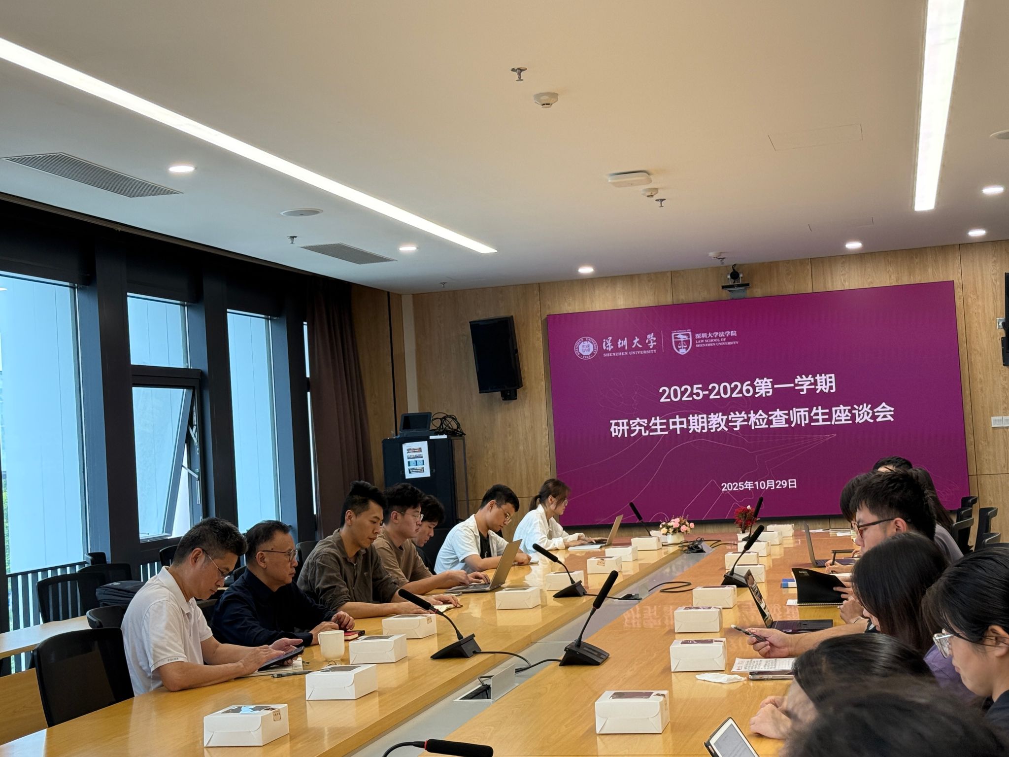 为进一步加强法学院教风学风建设,深化师生沟通,提升研究生培养质量,深圳大学法学院于2025年10月29日召开2025—2026学年第一学期中期教学检查师生交流座谈会。本次会议由分管研究生工作的副院长周卫主持。学院党委书记马文泽、党委副书记林济霖、教师代表左德起、辅导员沈小琳、研究生教学秘书邓耀辉与孙桃花出席了本次会议。研究生各年级、各专业均派出学生代表参会,参与座谈的师生总人数约40人。