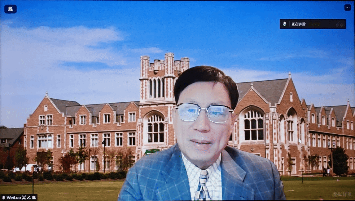 随后,美国圣路易斯华盛顿大学法学院罗伟线上远程向在场师生进行了项目宣讲。罗伟老师重点介绍了圣路易斯华盛顿大学的办学特色、先进的校园基础设施以及优越的地理位置。他围绕该校与深圳大学法学院的LLM联合培养项目,从学科排名、师资力量、职业发展支持等多个维度进行了介绍,并结合往届学生的申请案例,详细解读了项目录取标准及申请注意事项。