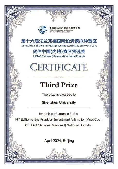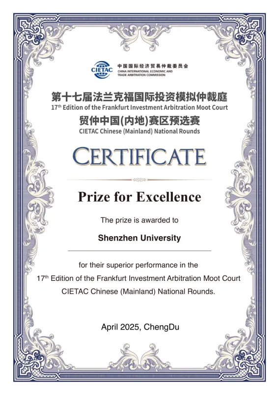 深圳大学代表队自2024年起连续两年参加该项赛事,获得贸仲中国(内地)赛区预选赛三等奖、优胜奖,多位选手获得“最佳辩手”等荣誉称号。热忱欢迎有志于通过比赛提升自己、开拓眼界的同学报名参赛。