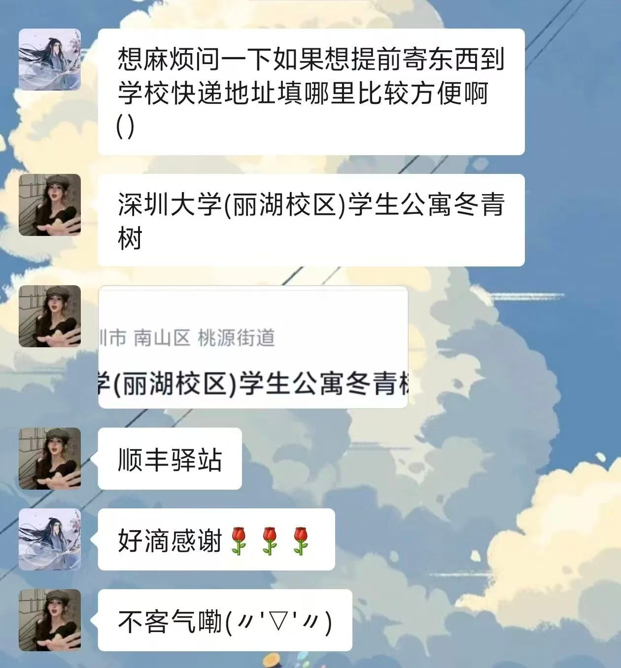 上学期末,来自深圳大学法学院的同学们就组建起一支志愿者小队,与西政的交换生伙伴线上建立了联系。从“快递寄到哪里最方便?”到“学校周边有什么美食?”,从选课系统操作指南到宿舍生活用品建议,一句句问答搭建起跨越地域的沟通桥梁。