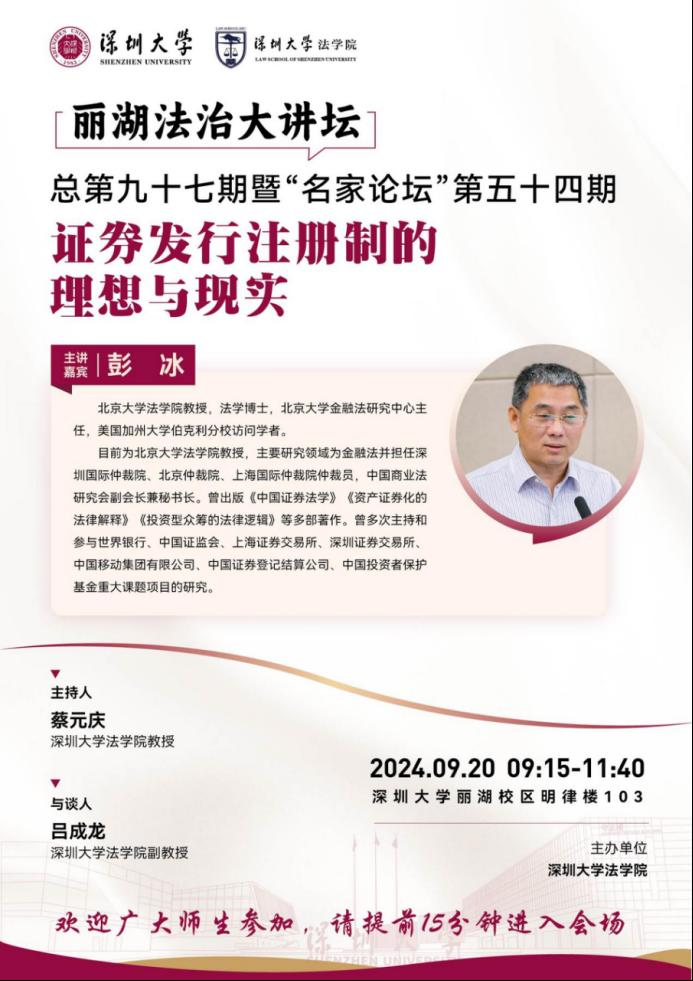 讲座预告|9月20日 彭冰:证券发行注册制的理想与现实