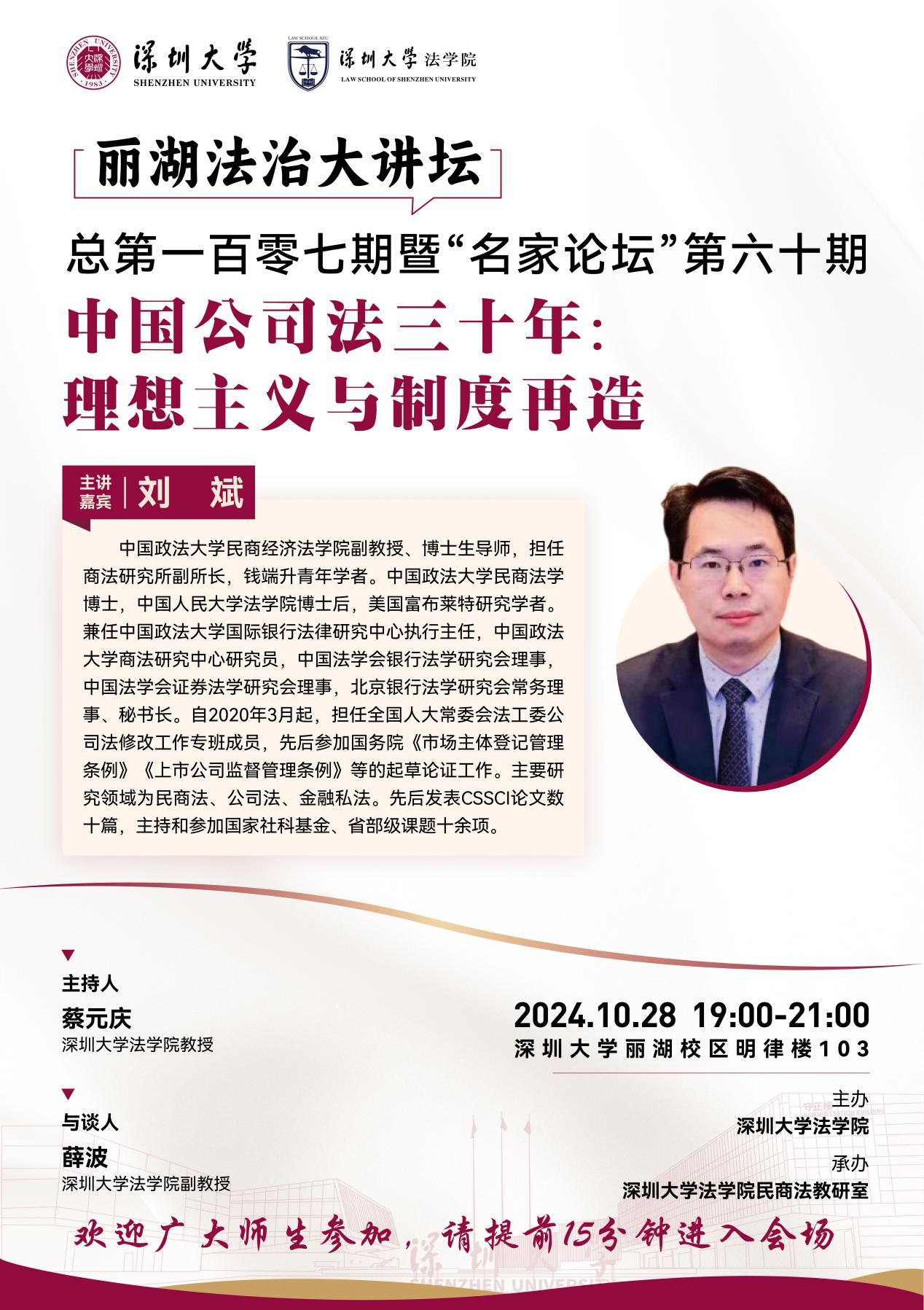 讲座预告|10月28日 刘斌:中国公司法三十年:理想主义与制度再造