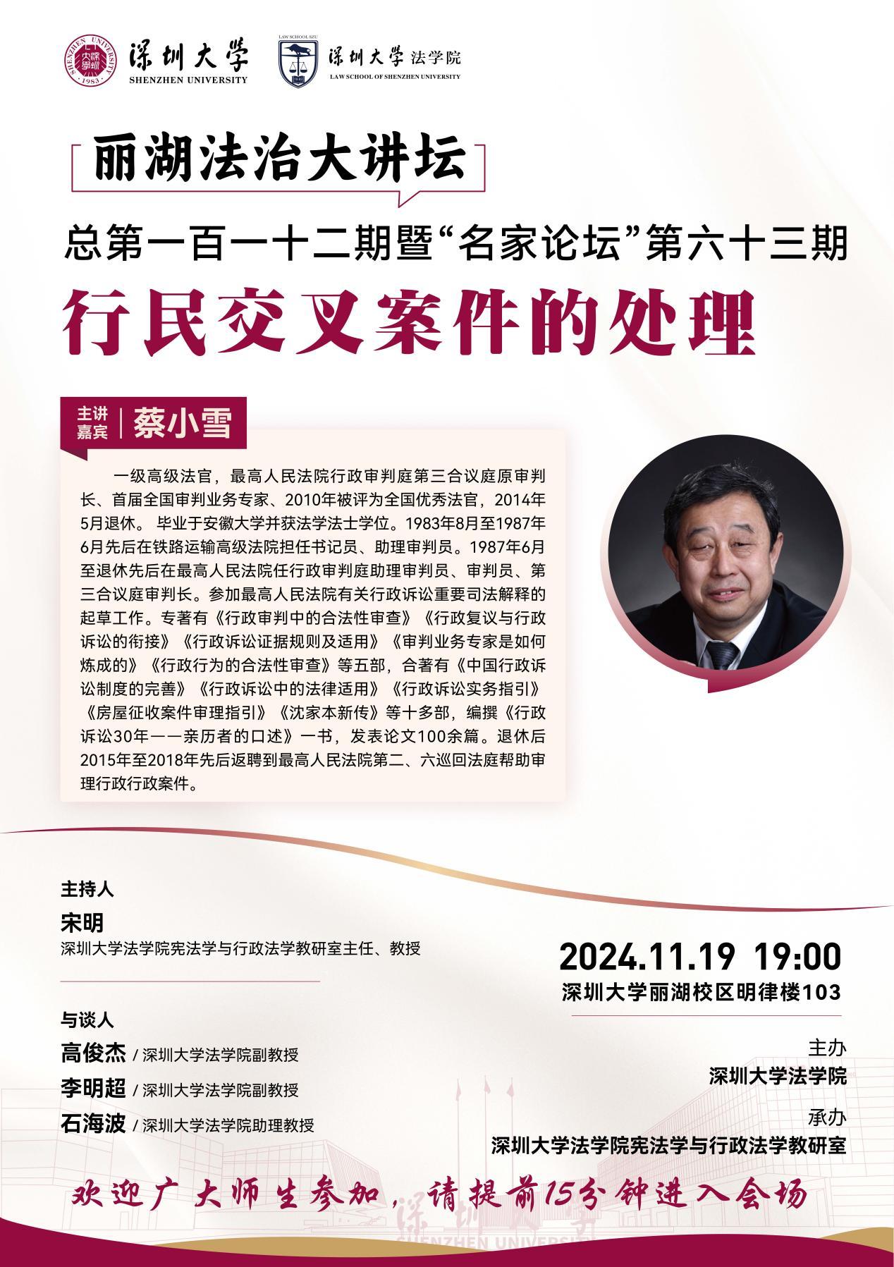讲座预告|11月19日 蔡小雪:行民交叉案件的处理
