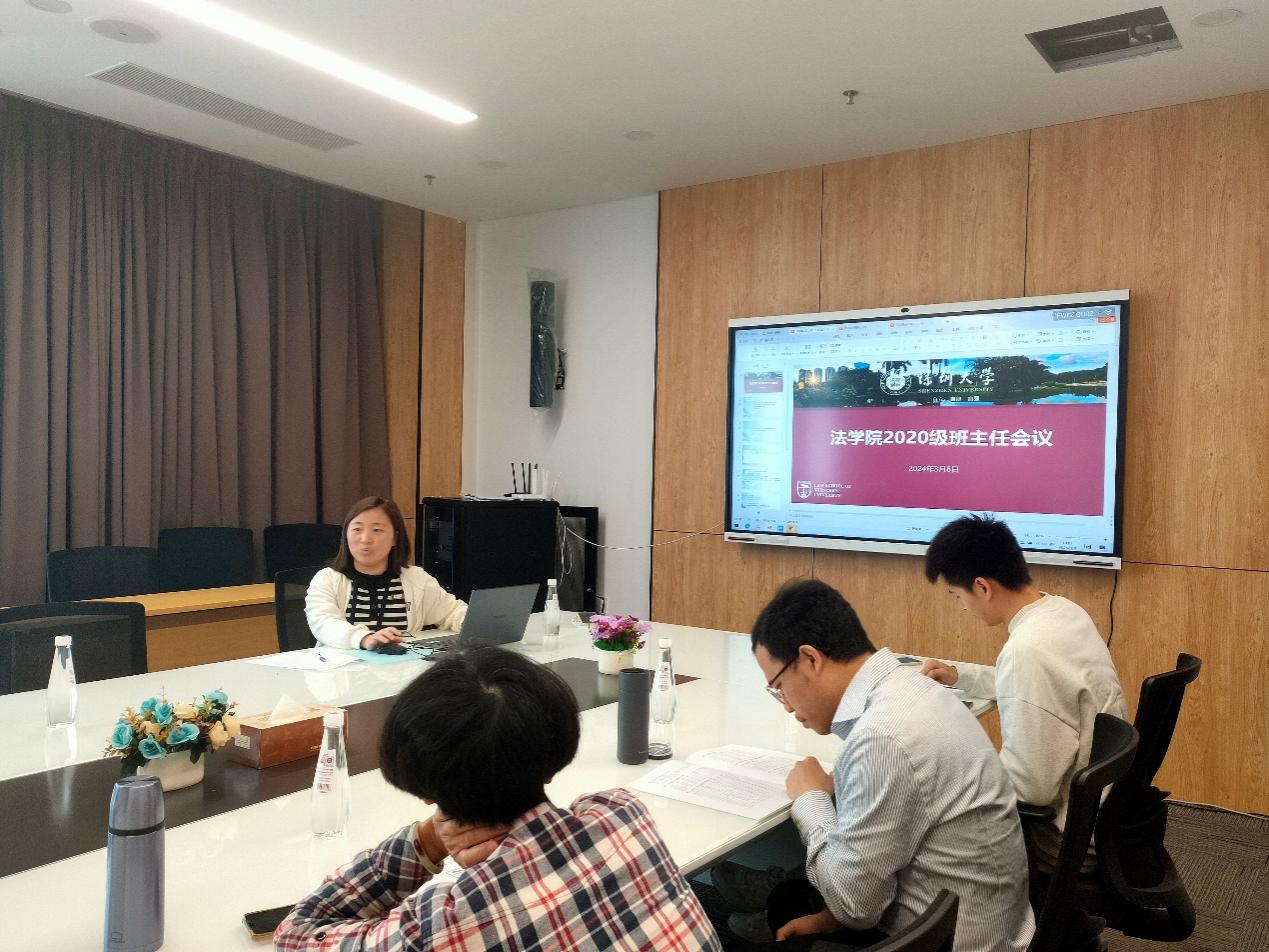 会上,王敏对法学院2024届本科毕业生目前就业情况、班主任可为本班同学提供的就业辅导以及法学院就业服务进行了细致的分析和介绍,希望班主任老师们高度重视学生就业工作、进一步关系了解同学们就业意愿和最新动向、为同学们推荐就业机会,对存在就业困难的学生实行“一对一”分类精准帮扶,提醒已落实就业的同学及时填报就业信息等。